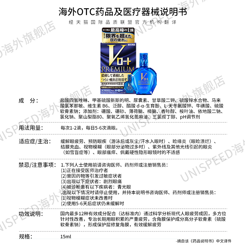 日本乐敦ROHTOV蓝钻眼药水眼疲劳润眼眼充血滴眼液原装进口15ml