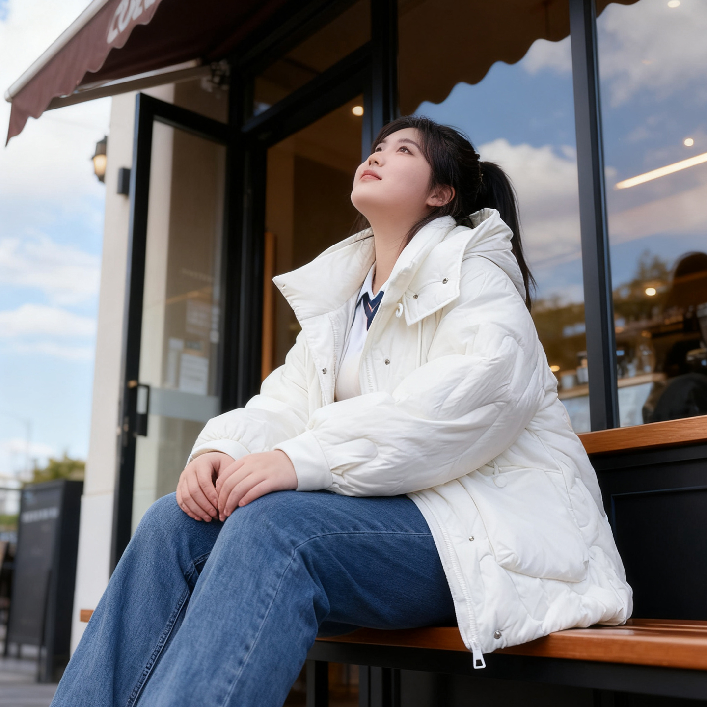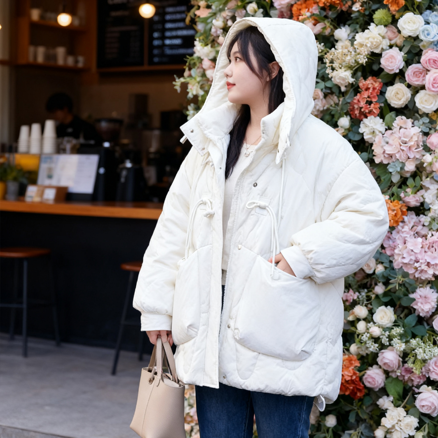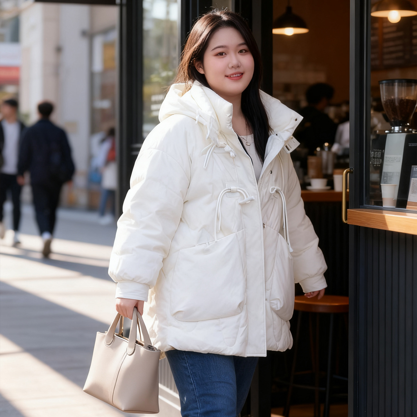 大码女装牛角扣羽绒棉服女连帽宽松胖mm加厚保暖百搭棉衣棉袄外套