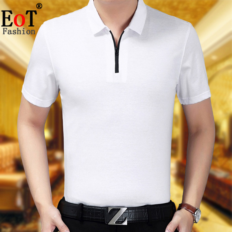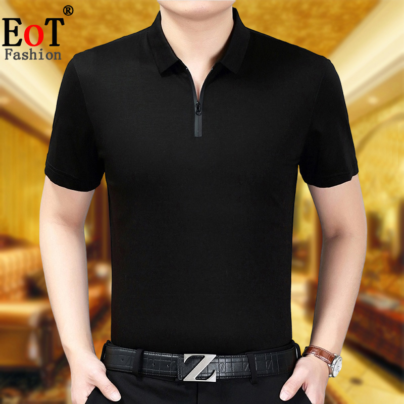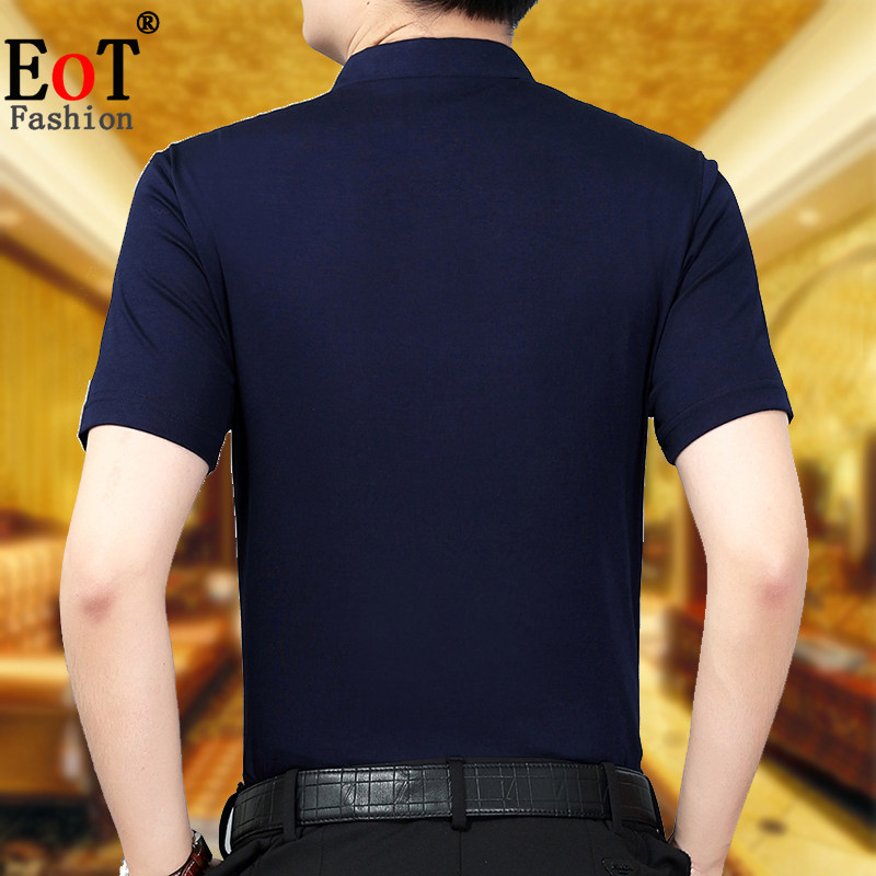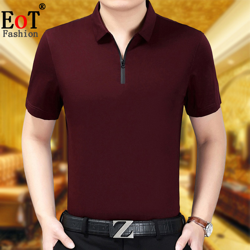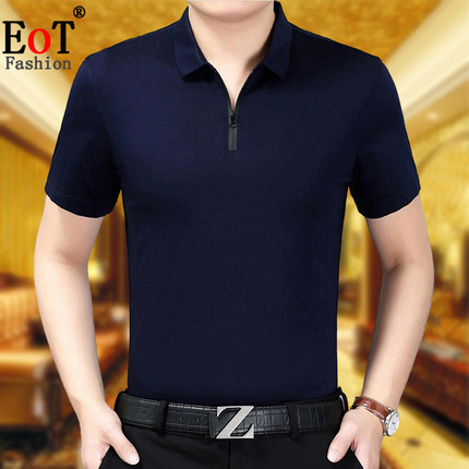 夏季中年男士短袖T恤半拉链翻领宽松爸爸休闲薄款冰丝半袖体恤衫