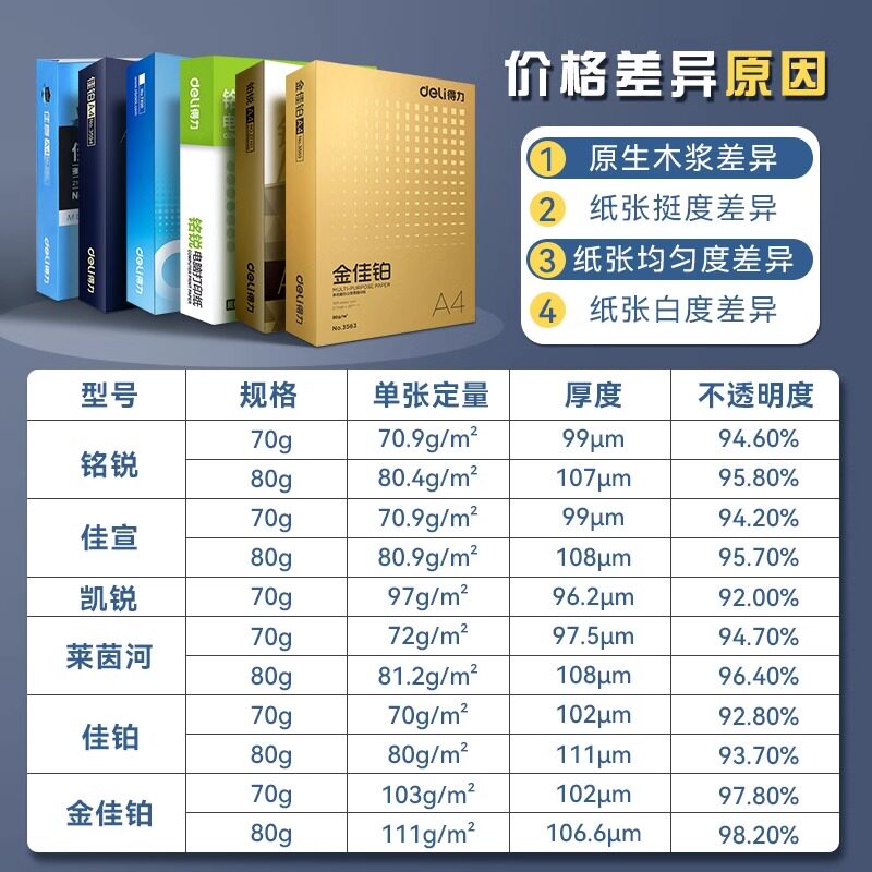 得力A4打印纸复印纸70g办公用品整箱批发5包2500张加厚a4纸80g双面打印不卡纸打印白纸一箱草稿纸学生用包邮