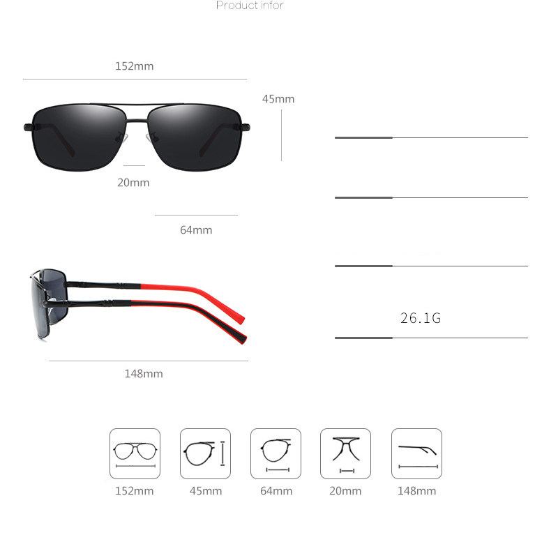 镁作创意方框偏光太阳镜男士方形双梁时尚方框墨镜弹簧腿司机眼镜