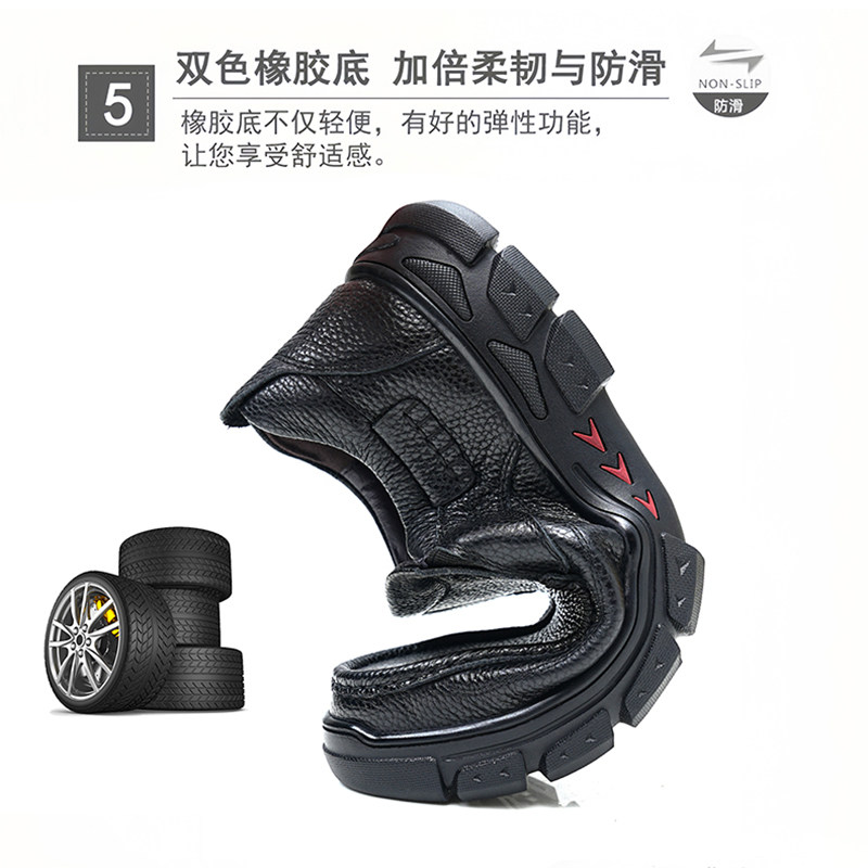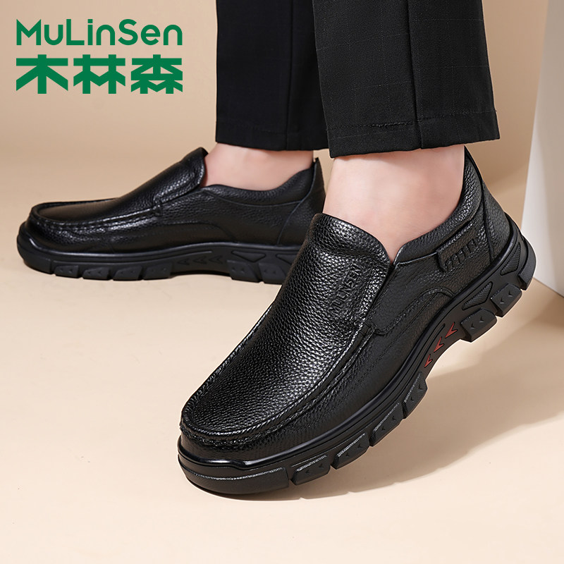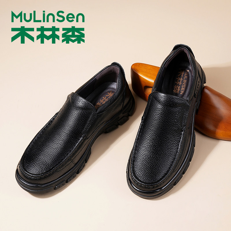 木林森皮鞋男款冬季头层牛皮休闲加绒棉鞋软底防滑爸爸乐福豆豆鞋