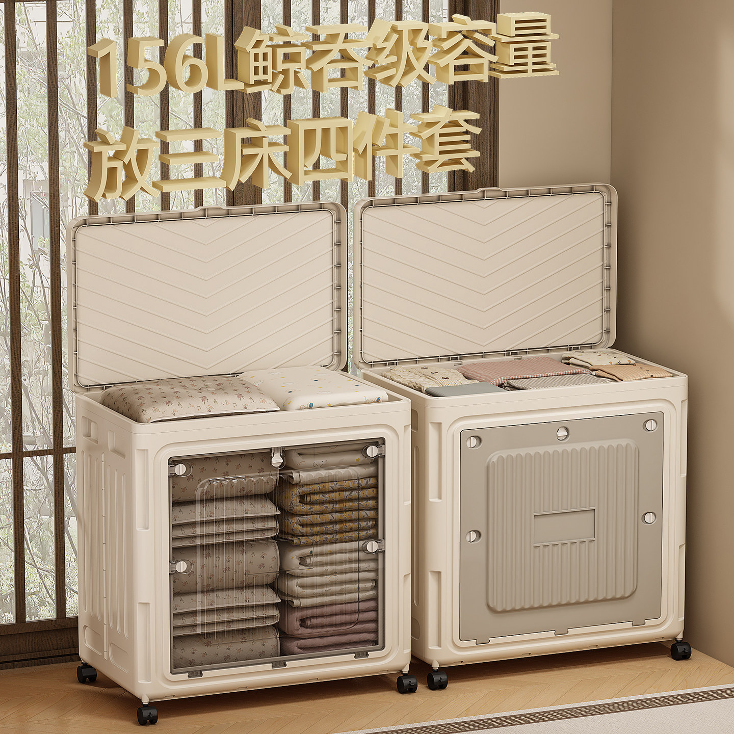 【156L大容量】透色可折叠收纳箱