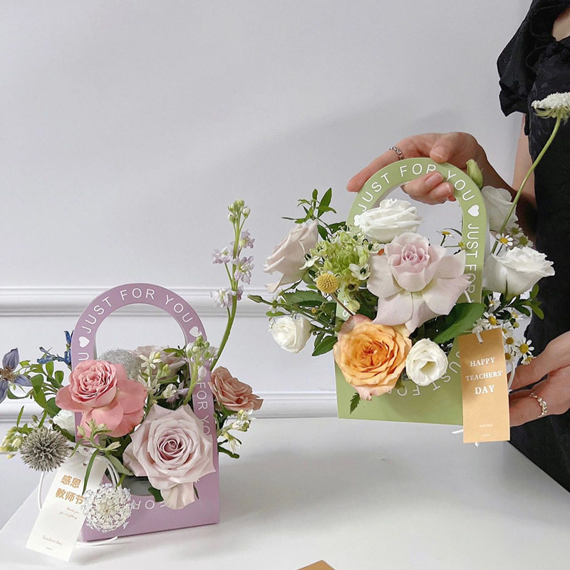 情人节鲜花镂空手提花盒花束包装盒纸质花篮花束包装插花diy材料