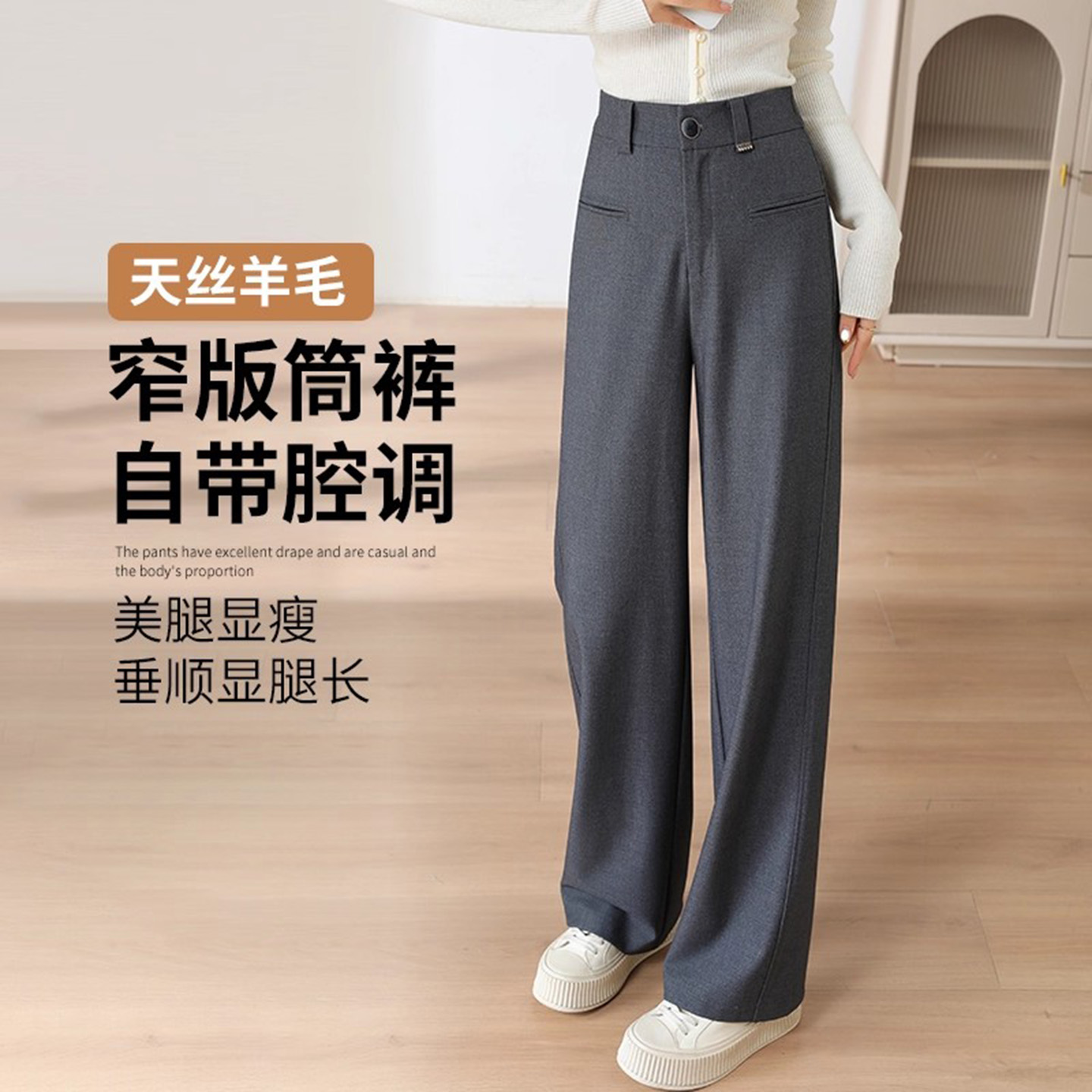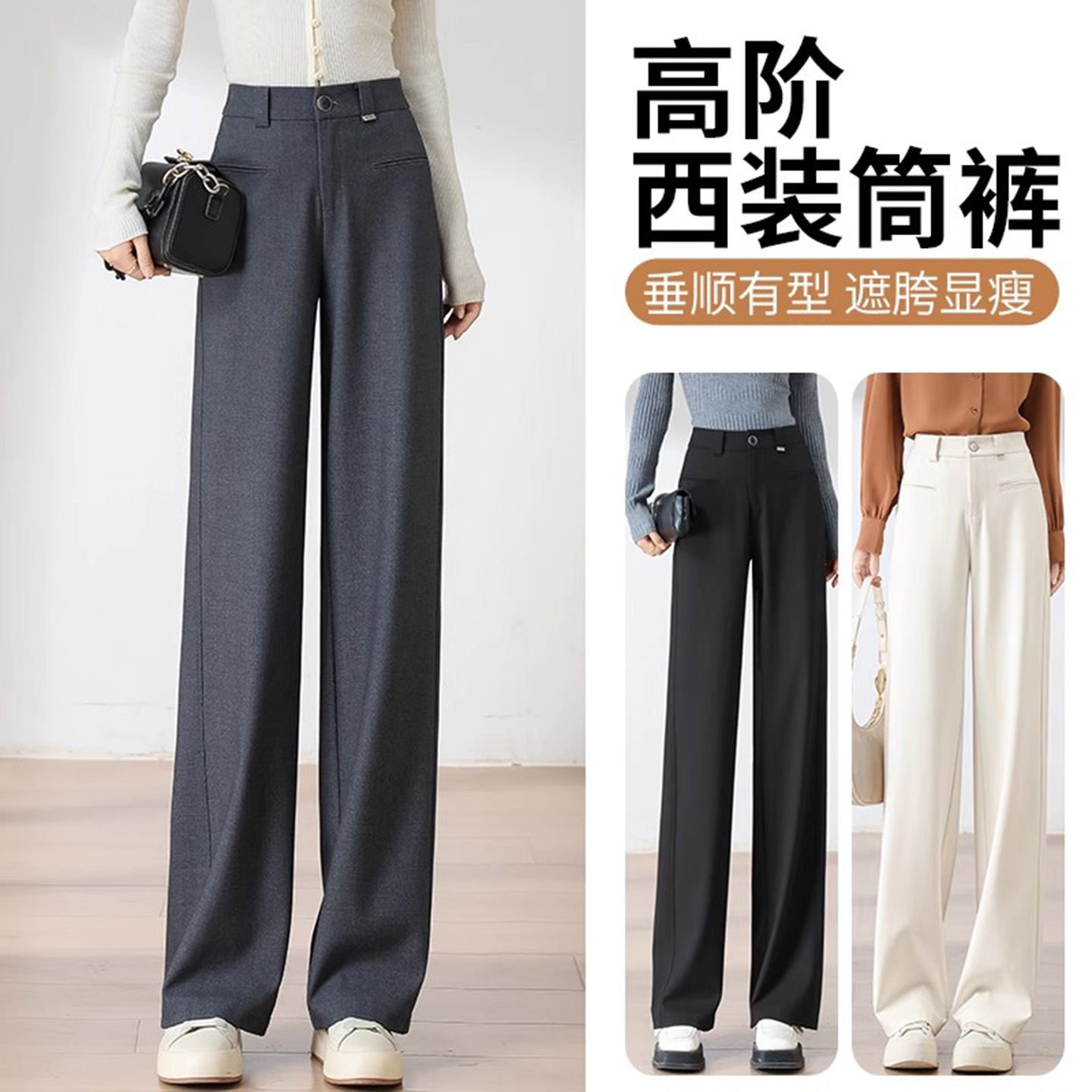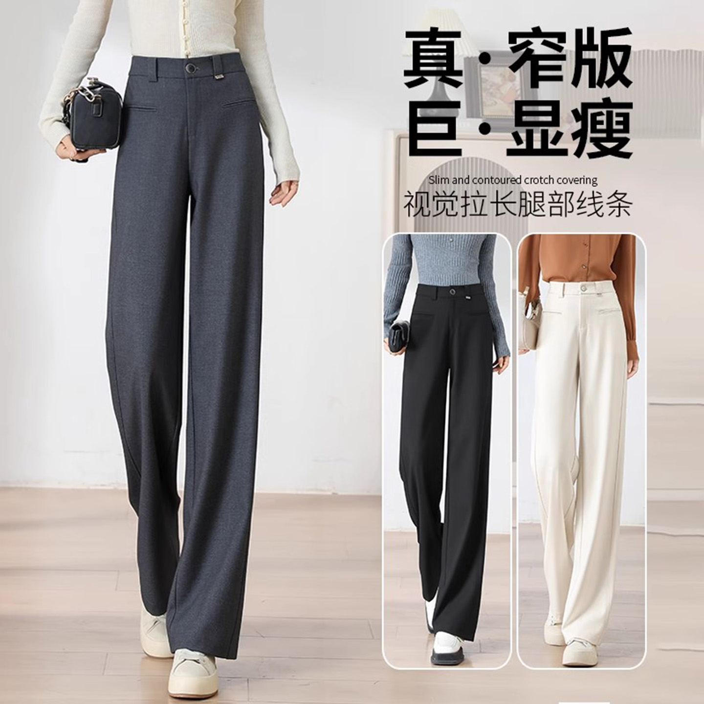 窄版阔腿裤女春秋季2025新款高腰垂感小个子显瘦直筒裤休闲西装裤