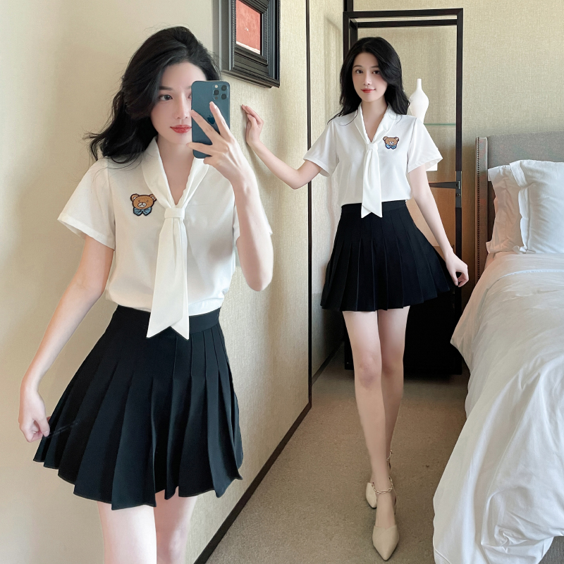 2025新款足浴沐足技师工作服女足疗减龄学院风百褶裙气质薄款套装