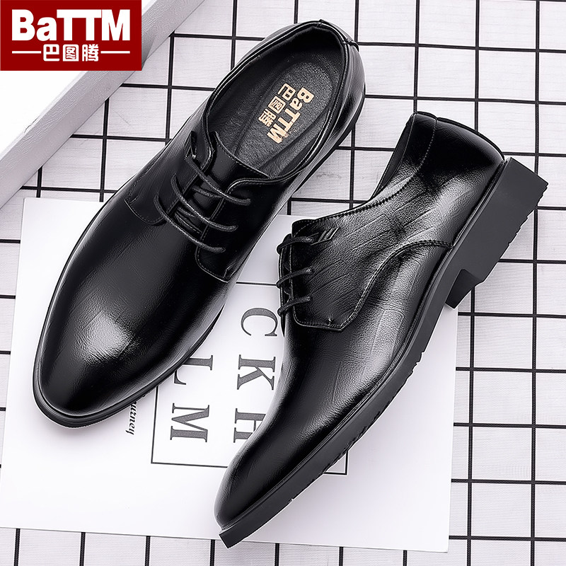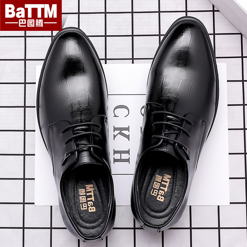 皮鞋男正装商务真皮系带休闲英伦尖头内增高黑色青年新郎婚礼鞋子