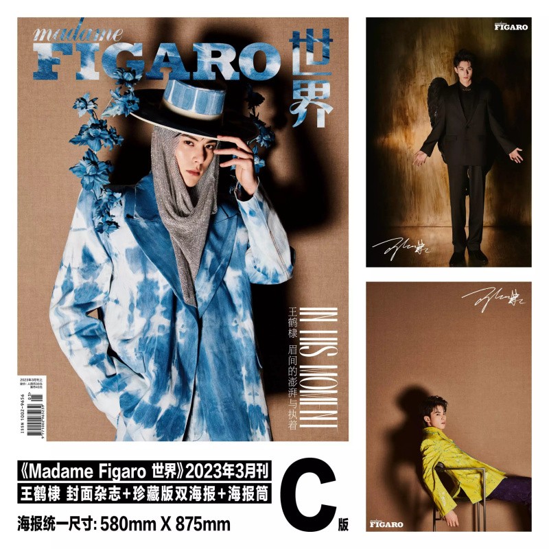 【C款 赠官方卷筒海报2张】MadameFigaro费加罗世界杂志 2023年3月封面王鹤棣 眉间的澎湃与执着非时尚芭莎2024年2月