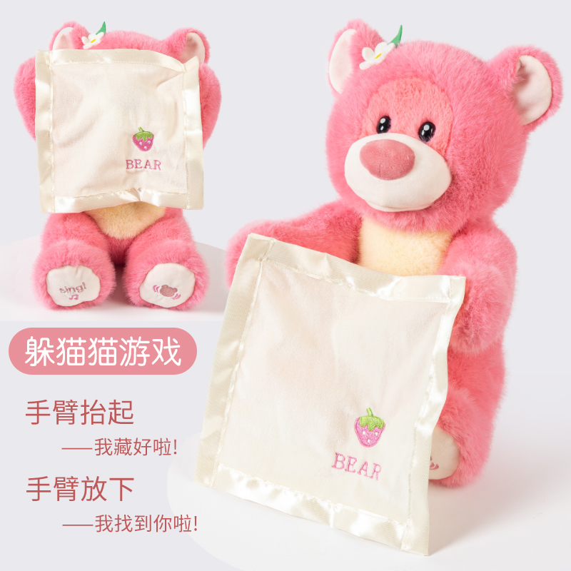 捉迷藏躲小熊毛绒玩具猫猫宝宝会说话的玩偶婴幼儿草莓熊公仔礼物