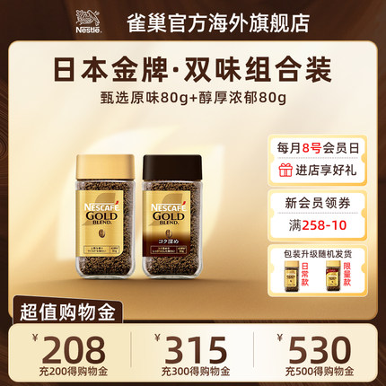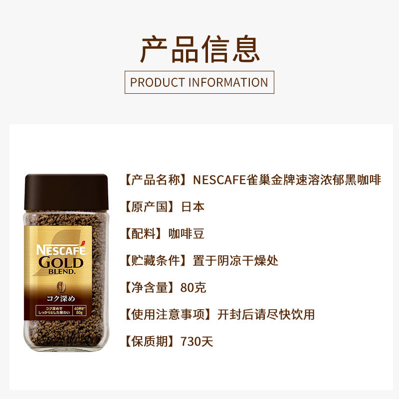 Nestle雀巢进口金牌冻干纯黑咖啡粉原味浓郁速溶咖啡提神80g*2瓶