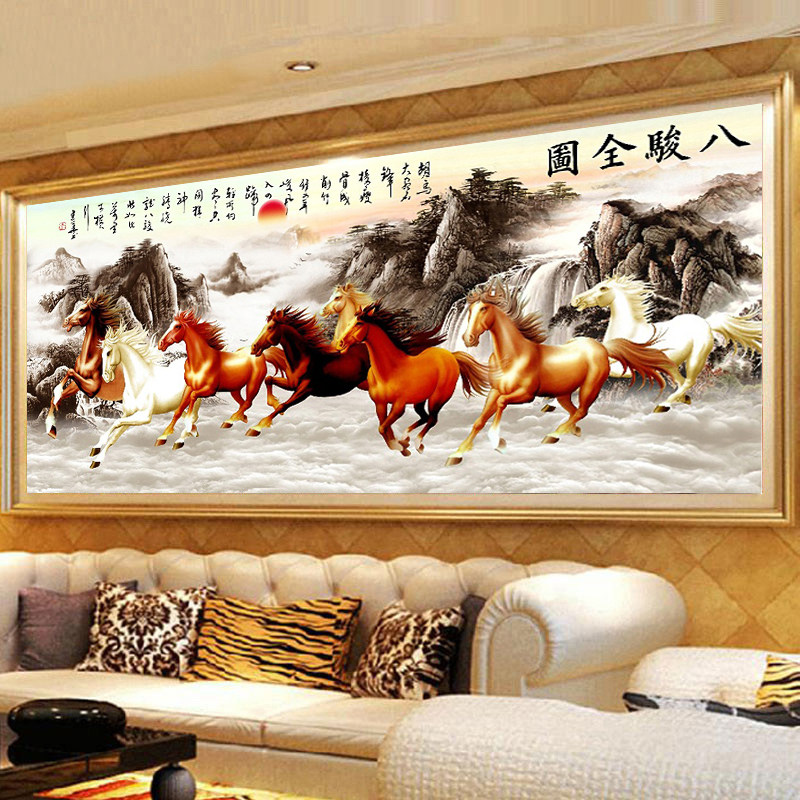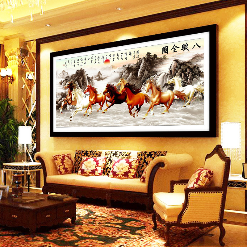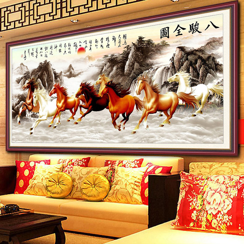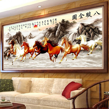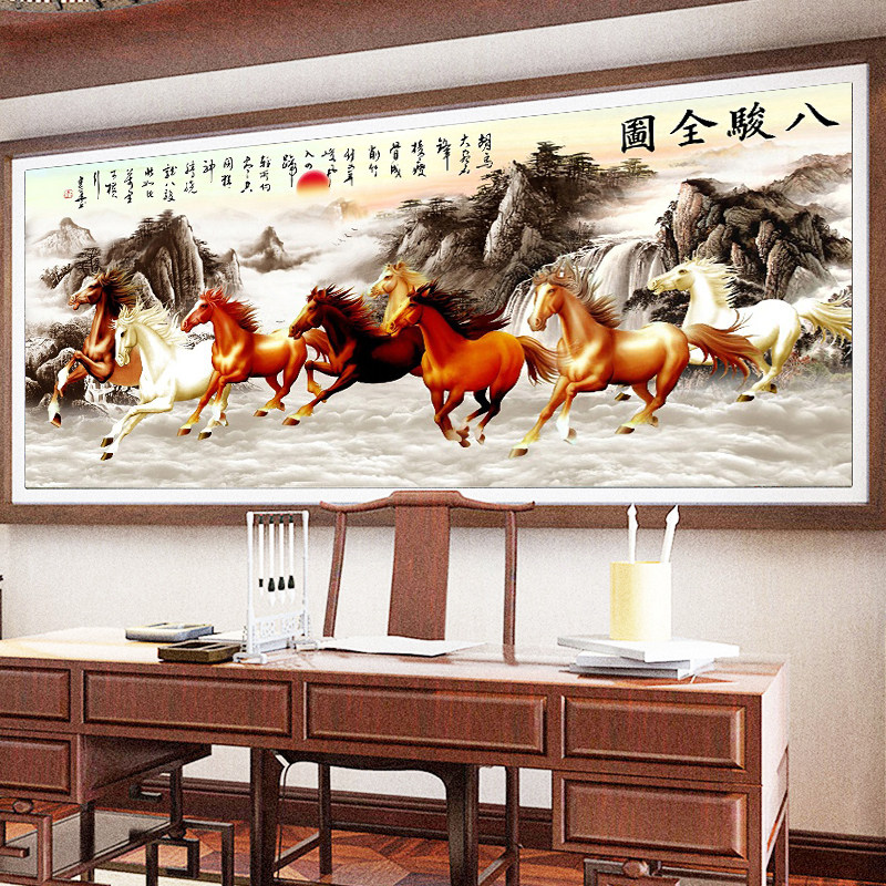 宣绒布钻石画满钻2026新款客厅马到成功5d贴钻画钻石绣动物八骏图