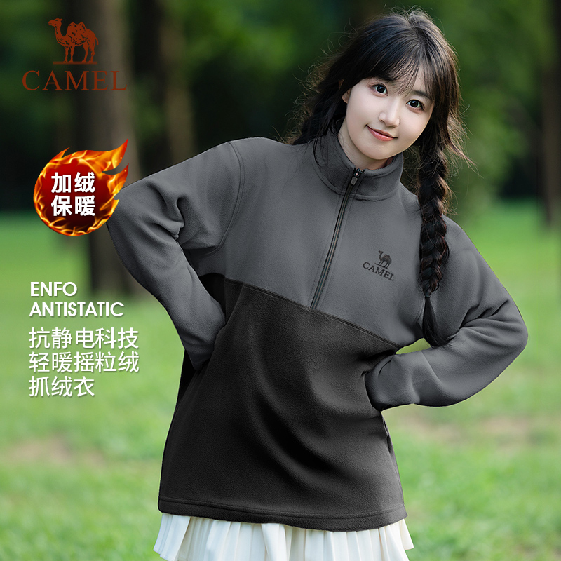 骆驼户外抓绒衣女士冬季摇粒绒外套女冲锋衣内胆男款登山保暖上衣