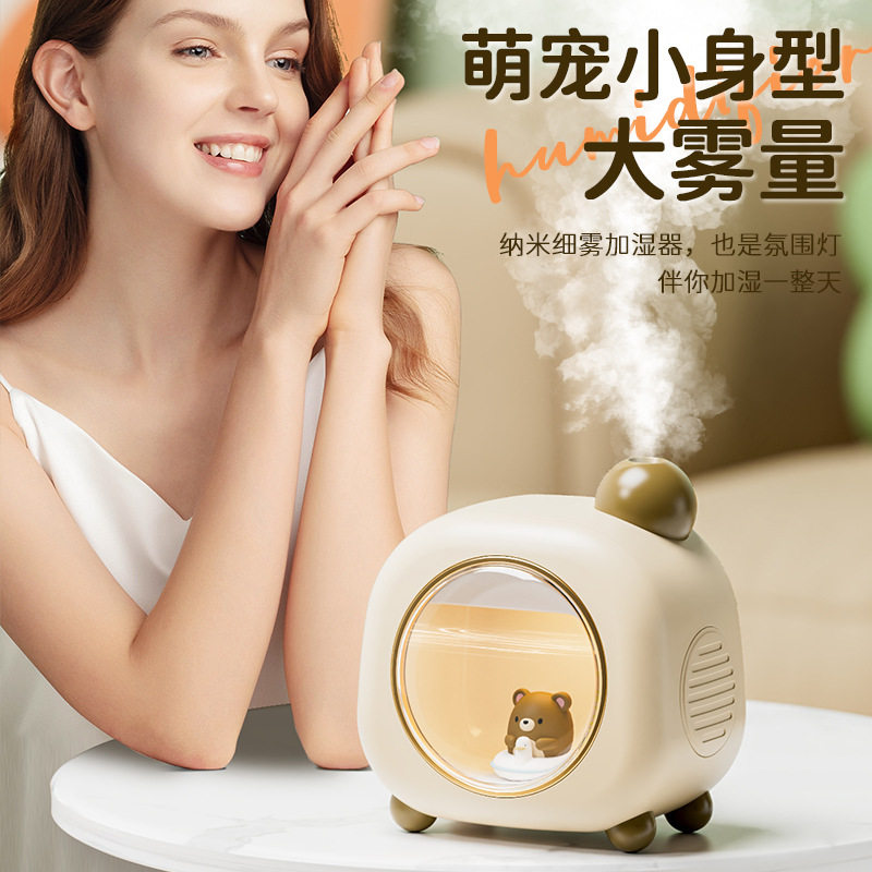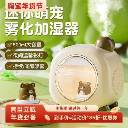 迷你萌宠加湿器家用静音补水办公室卧室矿泉水加湿器小夜灯加湿器