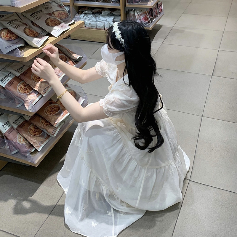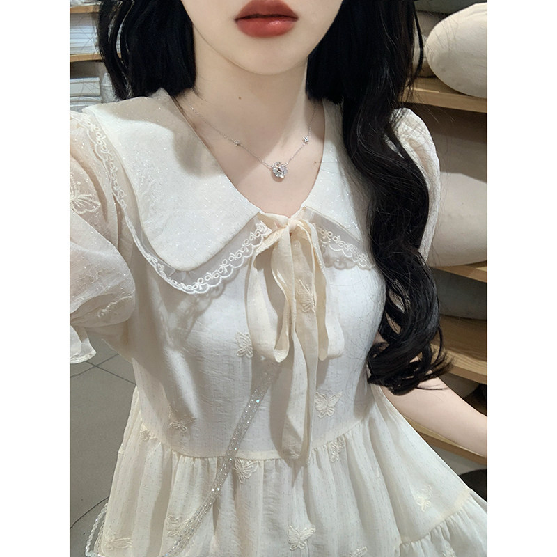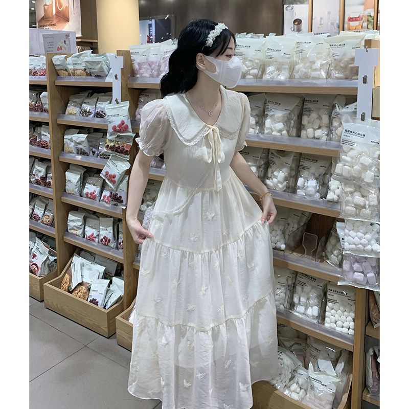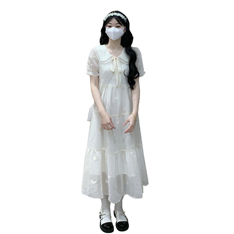 高中生甜美气质连衣裙夏时尚少女初中学生温柔风洋气娃娃领中长裙