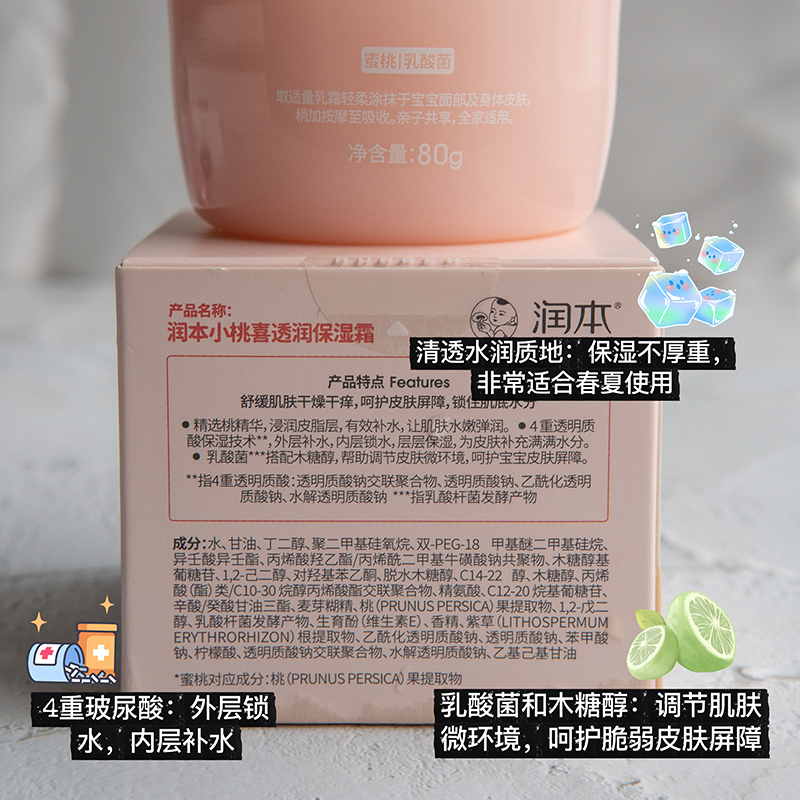 补水蜜桃乳酸菌面霜~保湿不油腻敏感皮混干皮宝宝霜春夏润肤清爽
