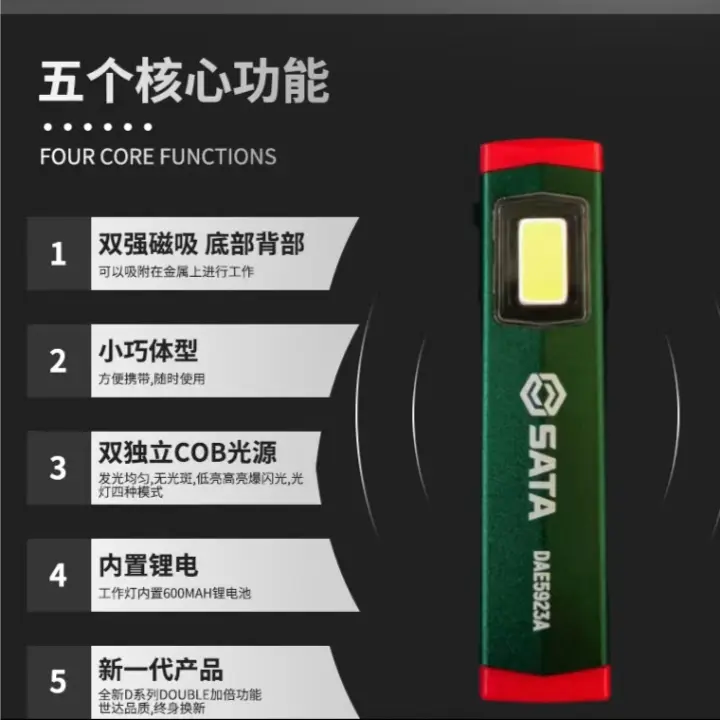 世达锂电工作照明灯夜跑巡防维修便携充电高亮户外汽修强光手电