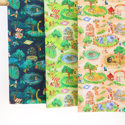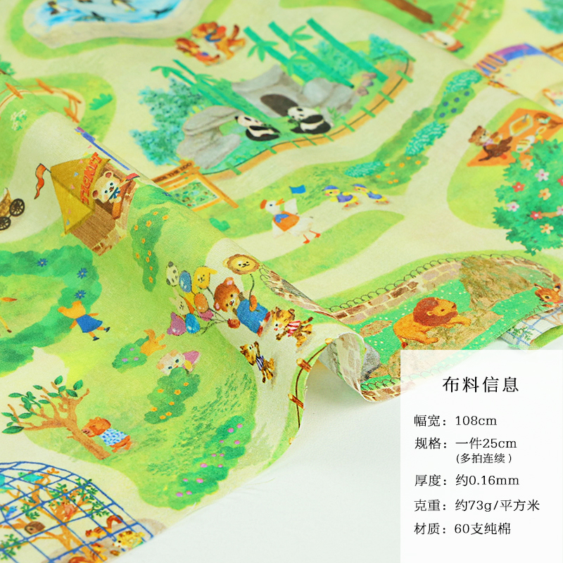 日本进口yukiemon松浦60支纯棉布料欢乐动物园柔软透气卡通服装布