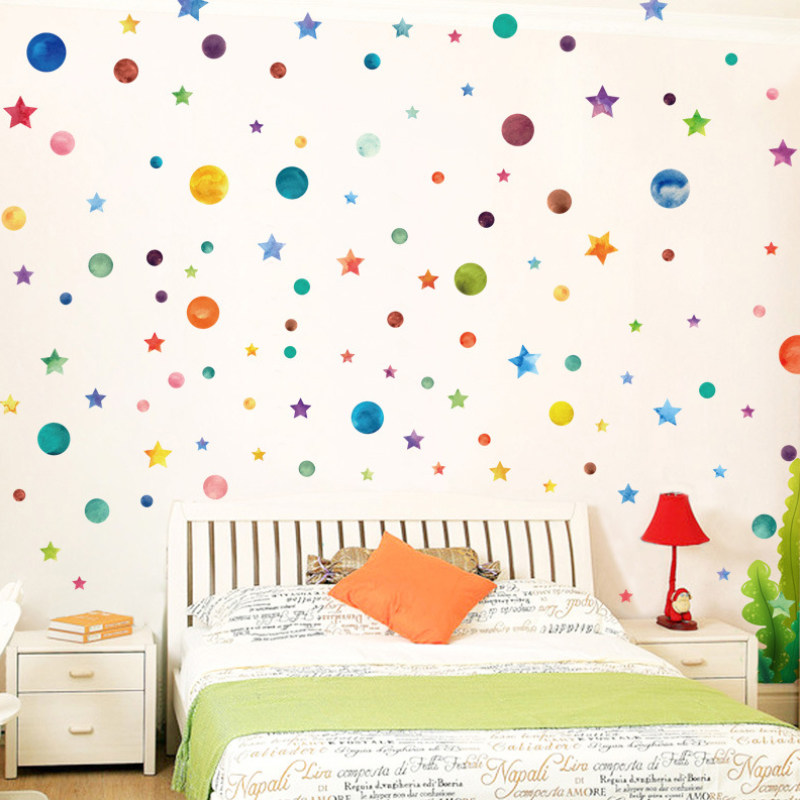 ins儿童房墙贴装饰五星圆点彩色自粘画墙壁可移除贴纸卡通壁纸
