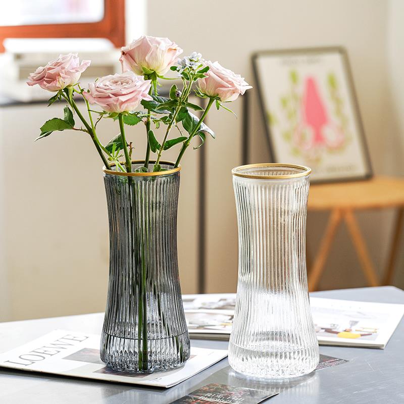 特大号玻璃花瓶水养富贵竹花瓶大口径束腰花瓶ins风客厅装饰摆件