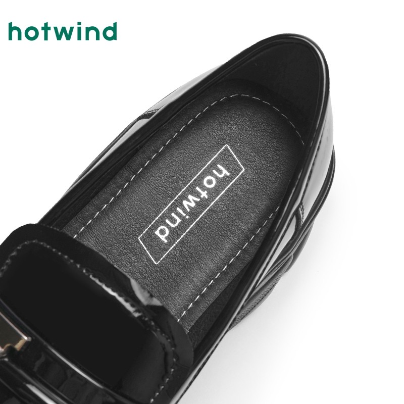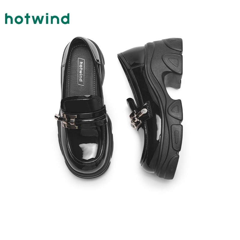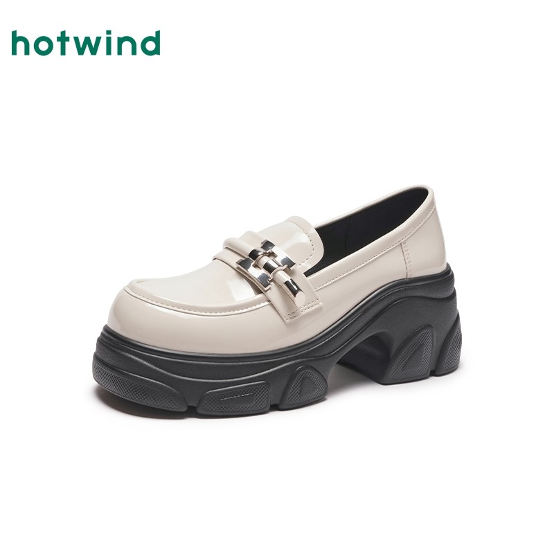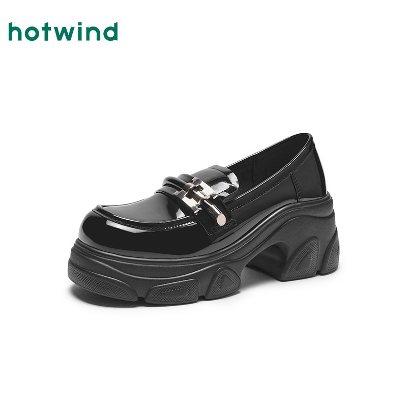 热风秋季新款女士厚底显瘦乐福鞋套脚百搭通勤单鞋圆头皮鞋