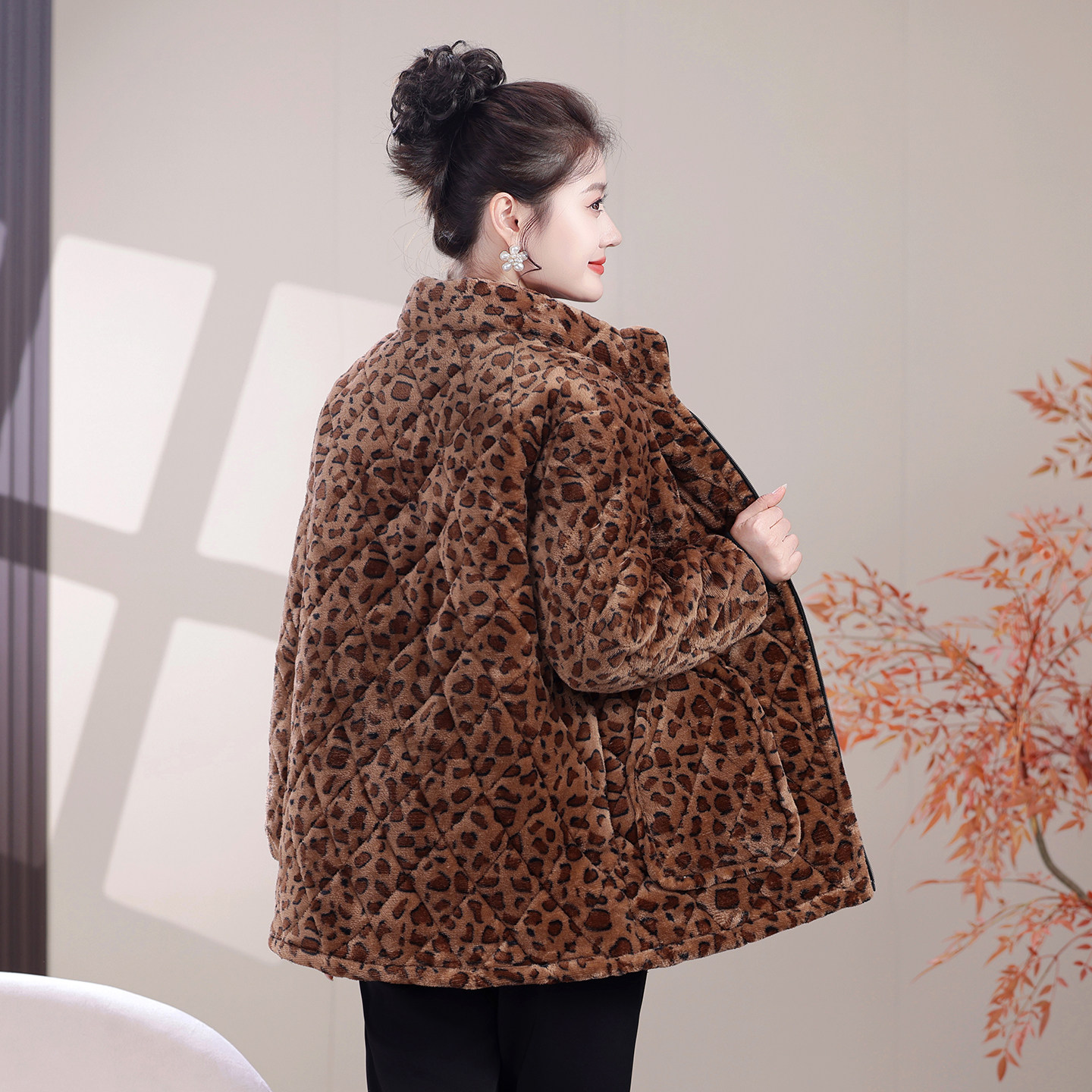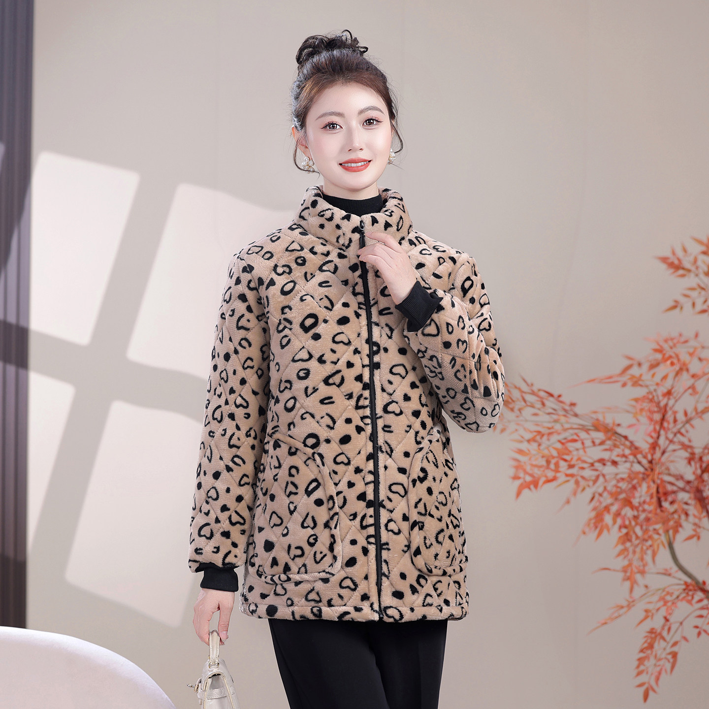 新款加绒保暖时尚罩衣加厚棉衣短款外套家居服女士小棉袄工作服
