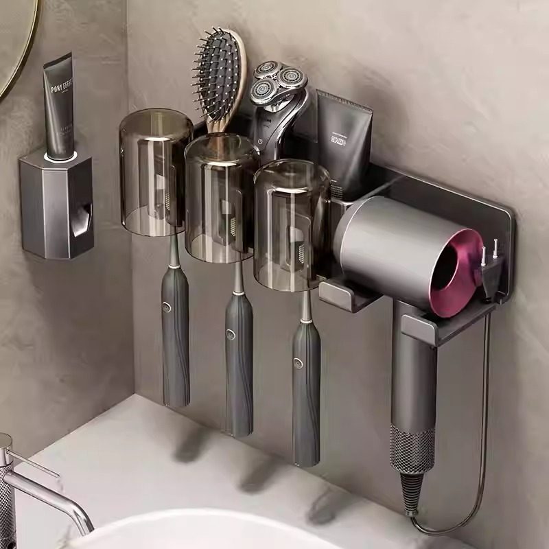 德国新款牙刷置物架免打孔卫生间收纳架壁挂式浴室吹风机架牙具架
