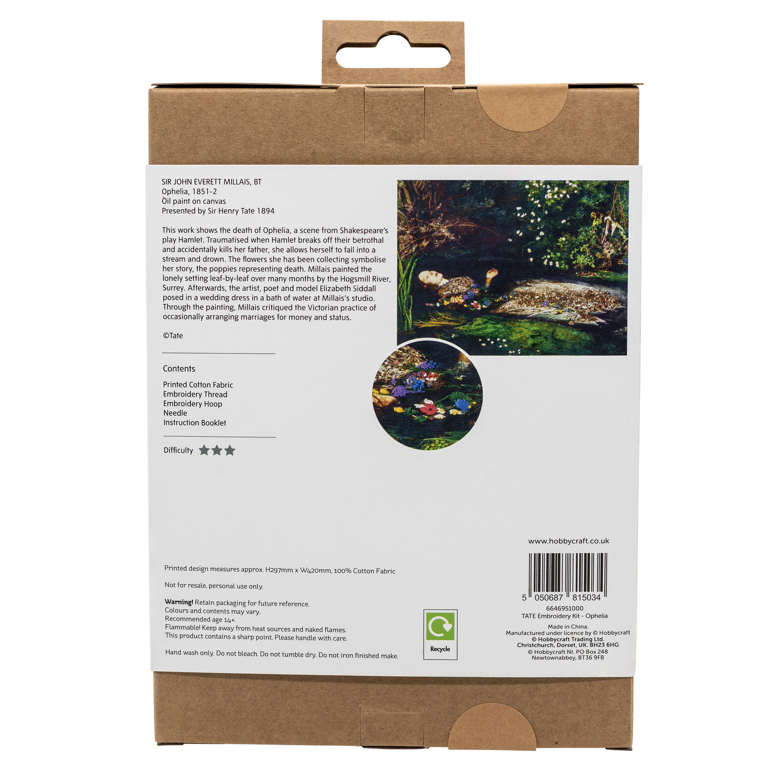 英国进口 奥菲利亚 泰特美术馆 手工刺绣DIY材料包 艺术装饰画