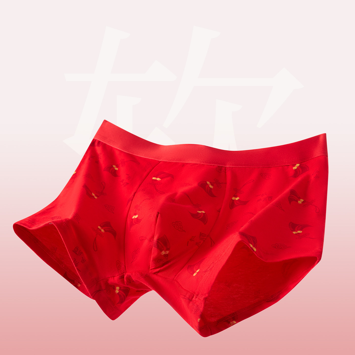 派米红内裤男士本命年红色四角内裤2026新年送礼送男友礼盒装短裤