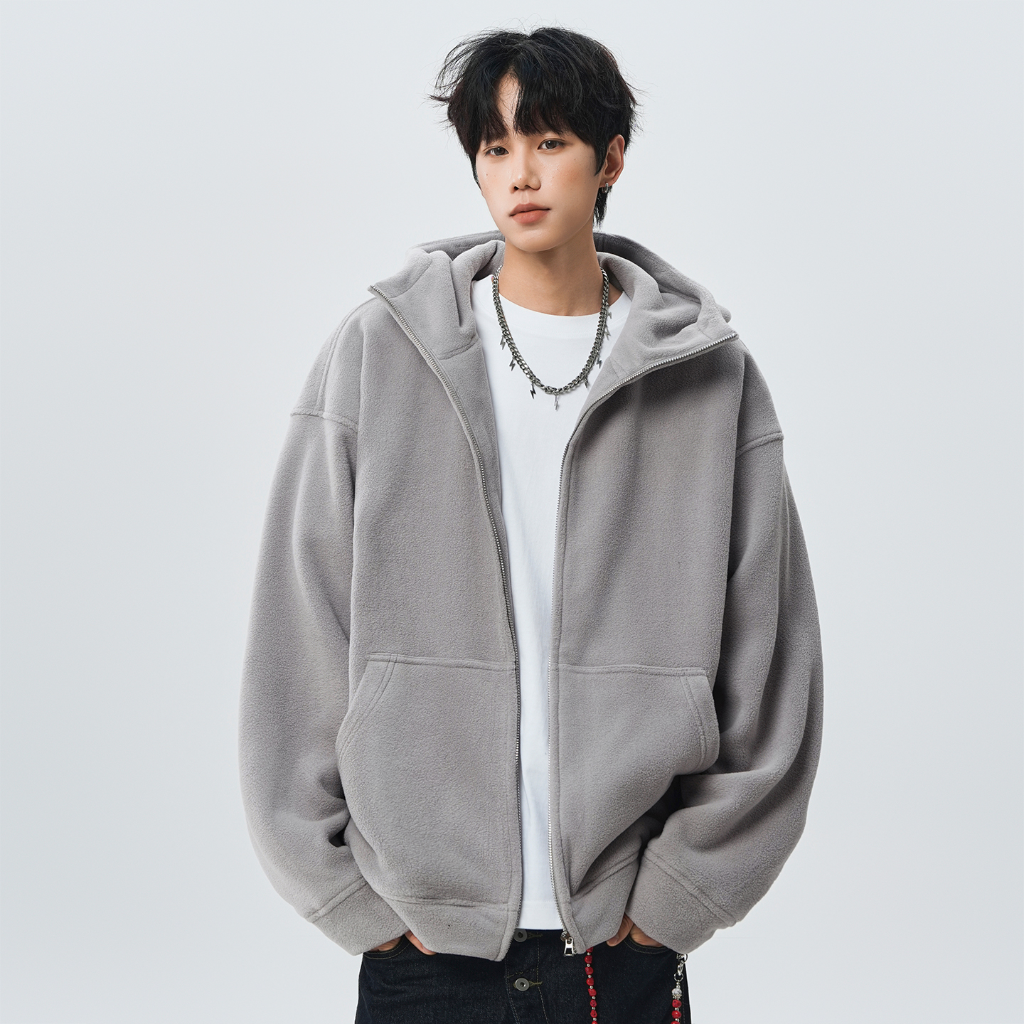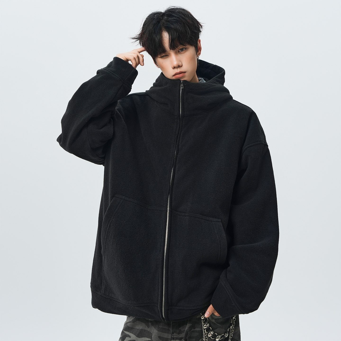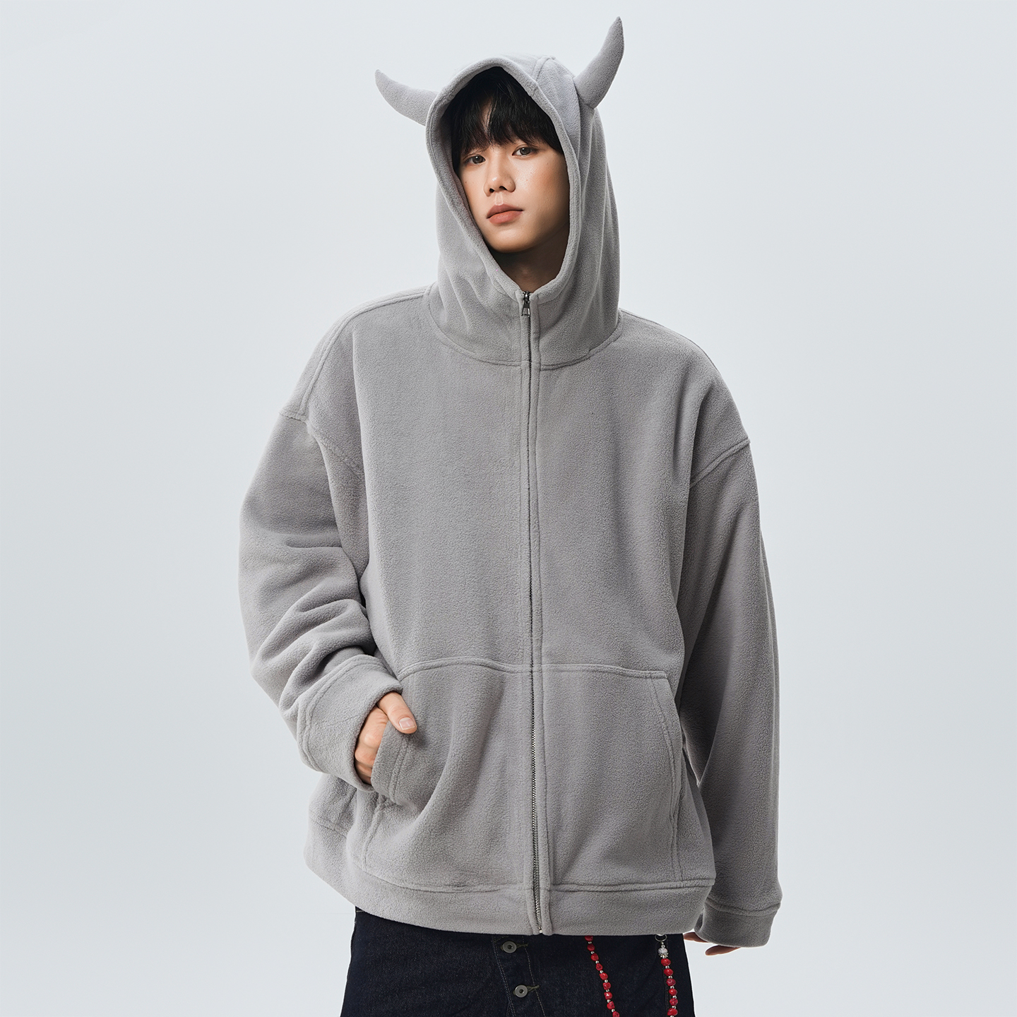 双面摇粒恶魔角开衫卫衣男加肥加大码潮胖子宽松美式高街秋冬厚款
