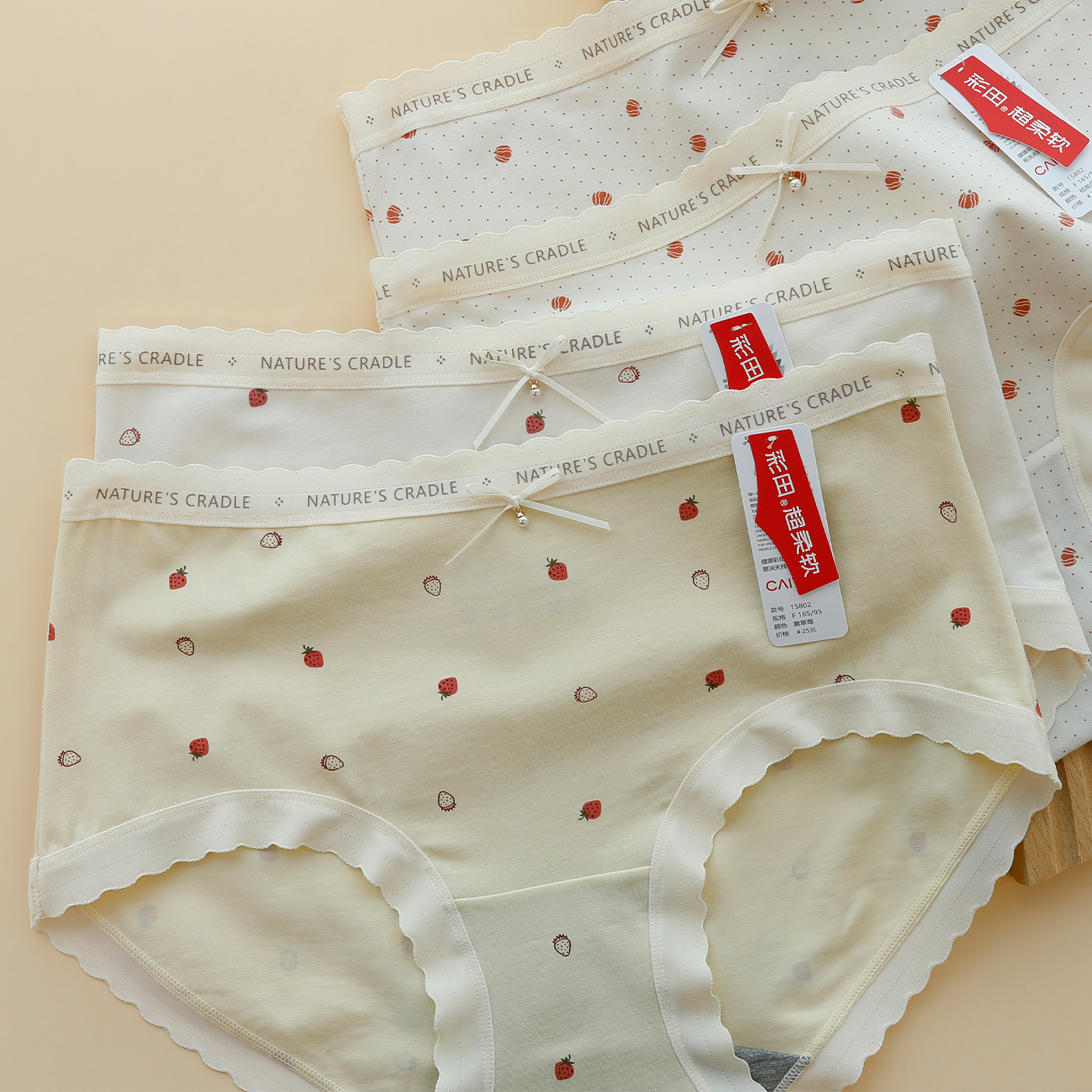 彩田莫代尔甜美印花棉质内裤中高腰抗菌柔软透气15802女士内裤