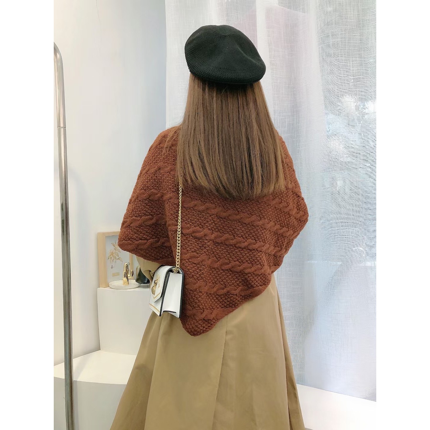 春秋冬披肩围巾两用斗篷加厚保暖色毛线针织带皮扣大三角巾外定制