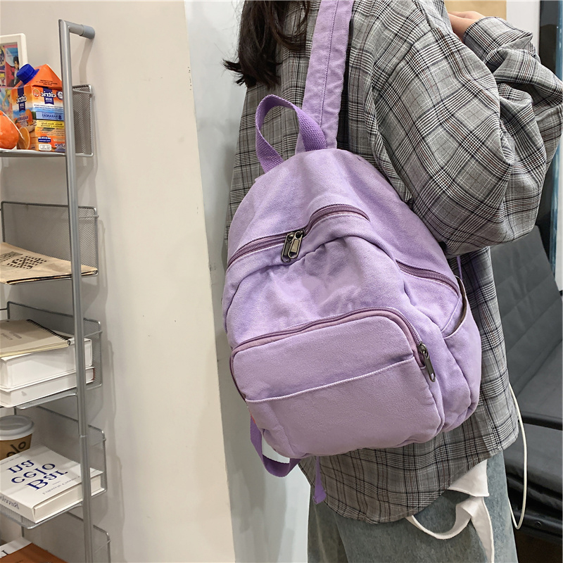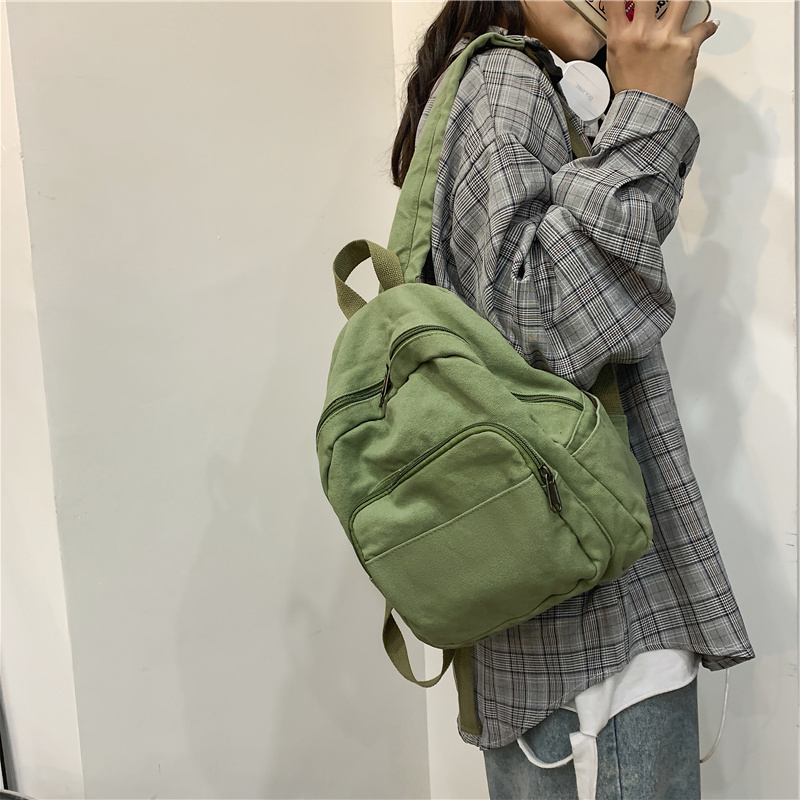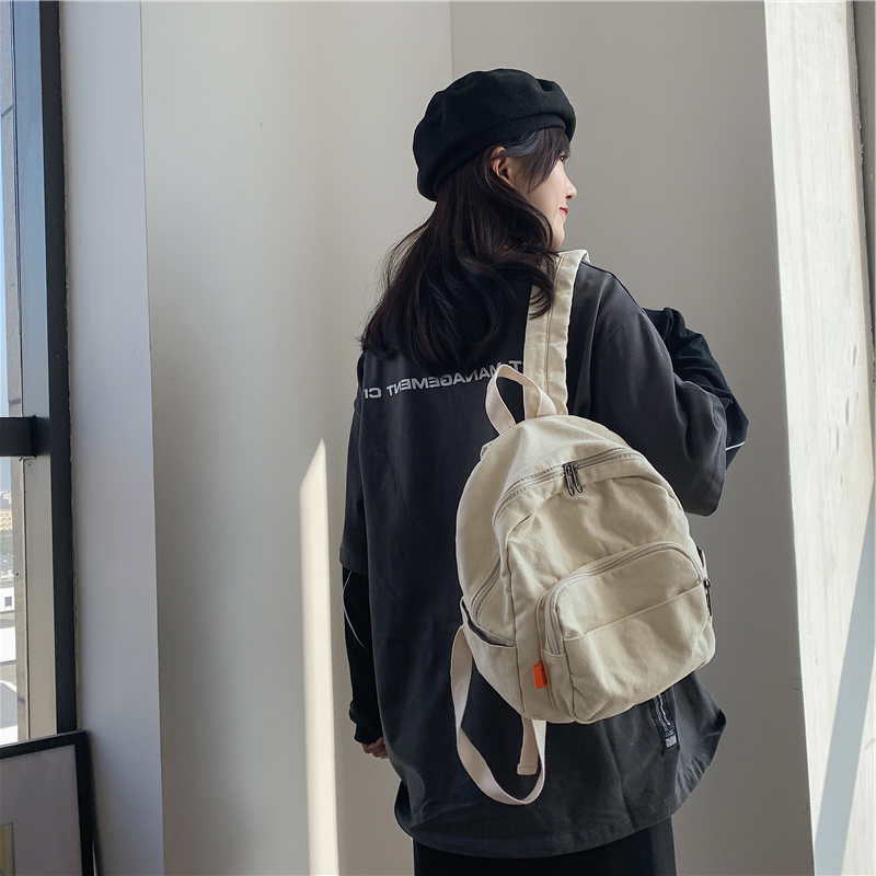 帆布小背包男女休闲百搭日系纯色学生手机平板小型迷你双肩包小包