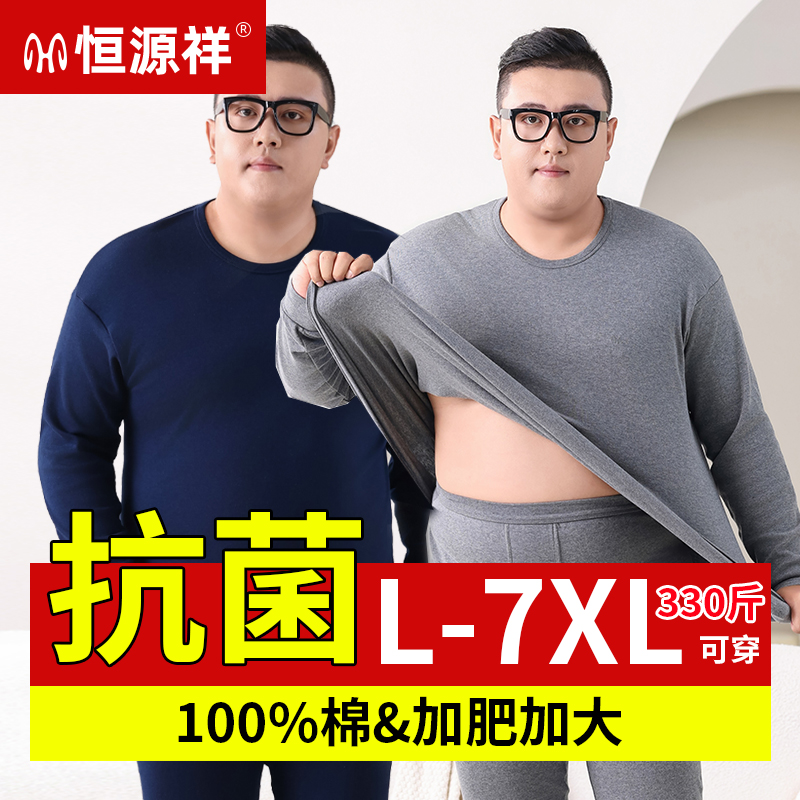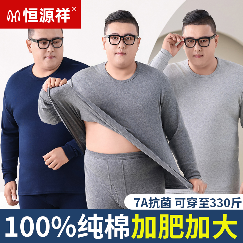 恒源祥加肥加大码秋衣秋裤男套装纯棉毛衫300斤肥佬胖子保暖内衣