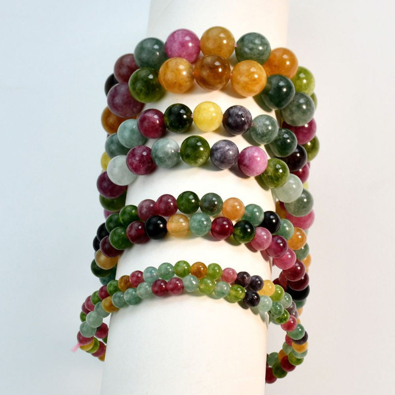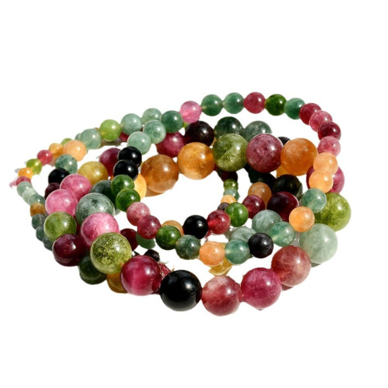 天然巴西老料糖果碧玺手链女单圈三圈彩色宝石手串女七彩碧玺