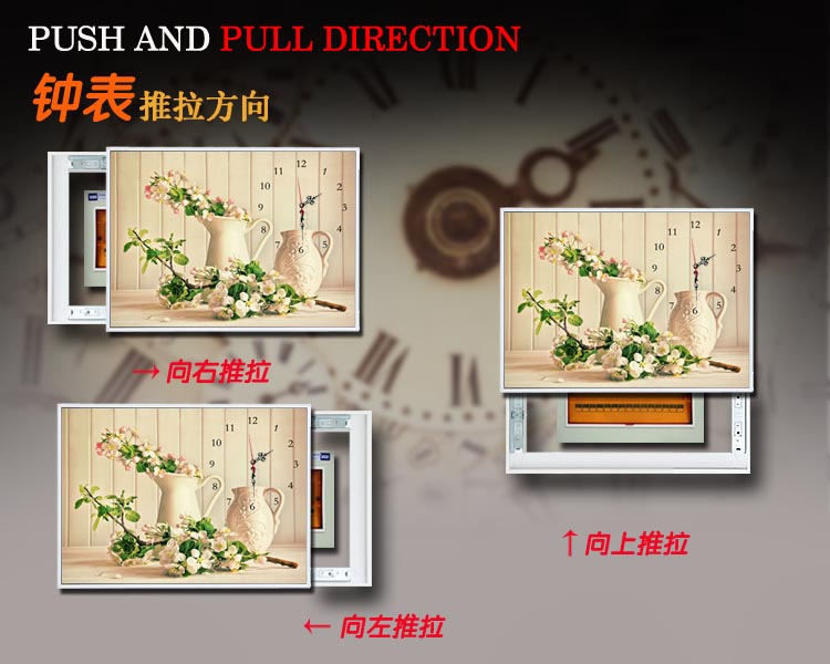 电表箱装饰画免打孔可推拉带钟表配电箱电闸盒液压上翻开遮挡挂画
