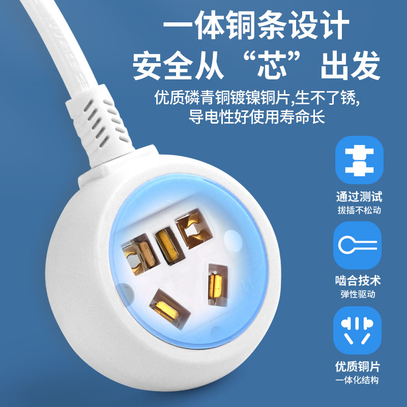 大功率纯铜电源延长线插座学生宿舍排插加长线三插头电动车充电线