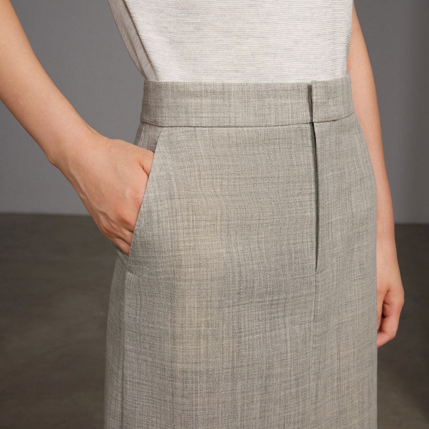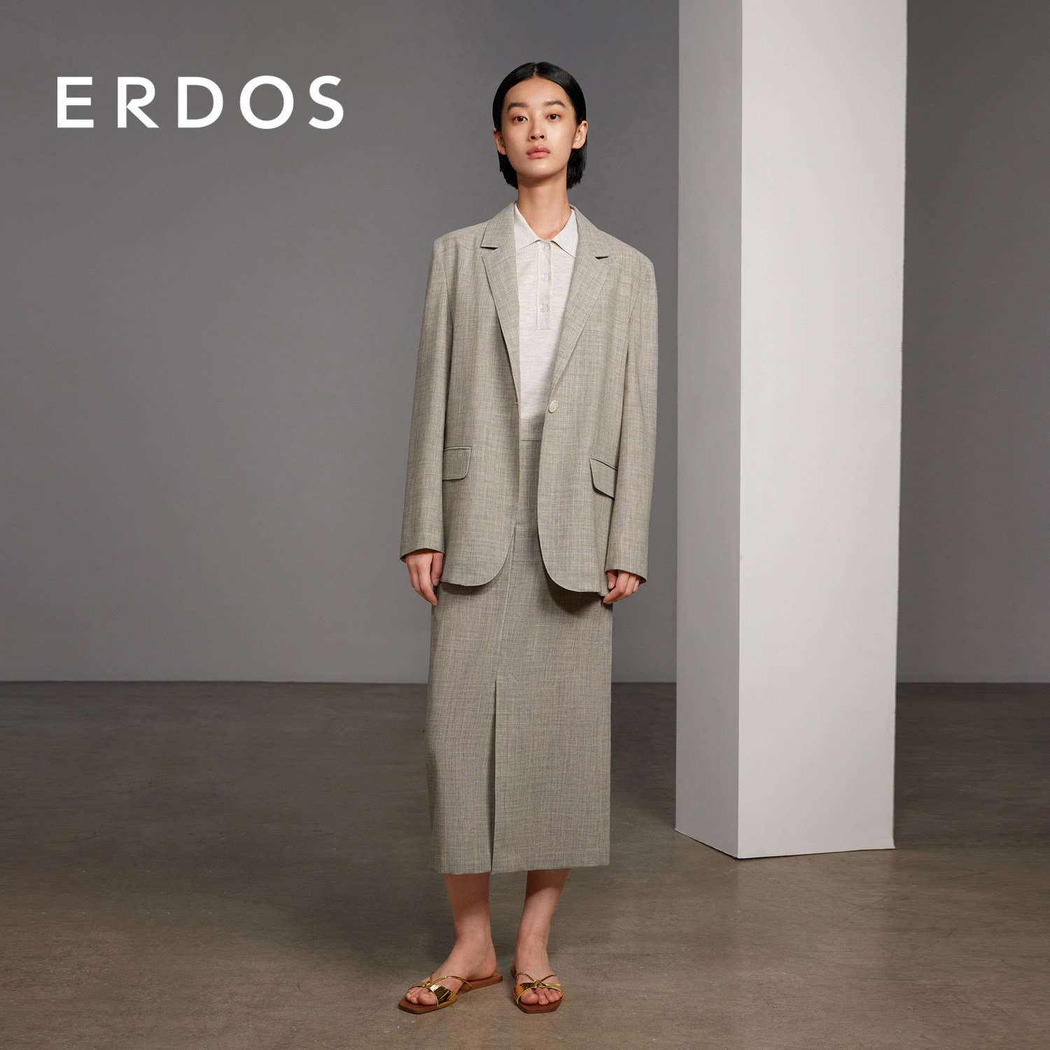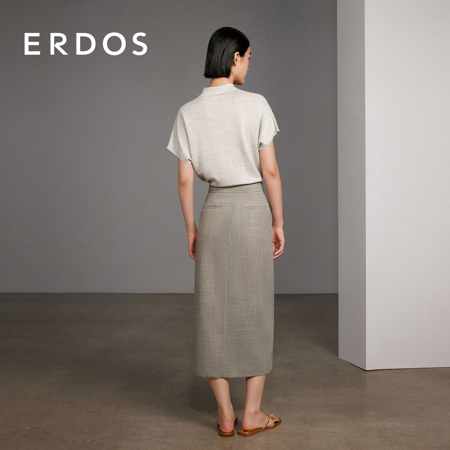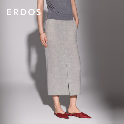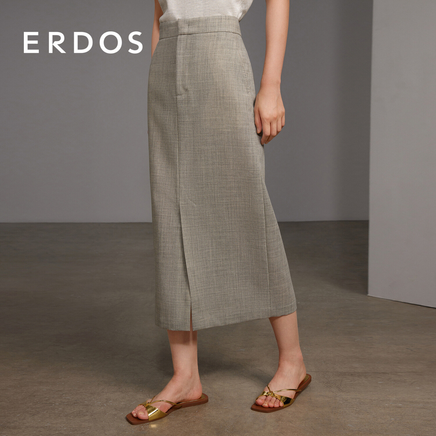 ERDOS 灰色长款直筒铅笔裙春精纺羊毛开叉职场西装半身裙女