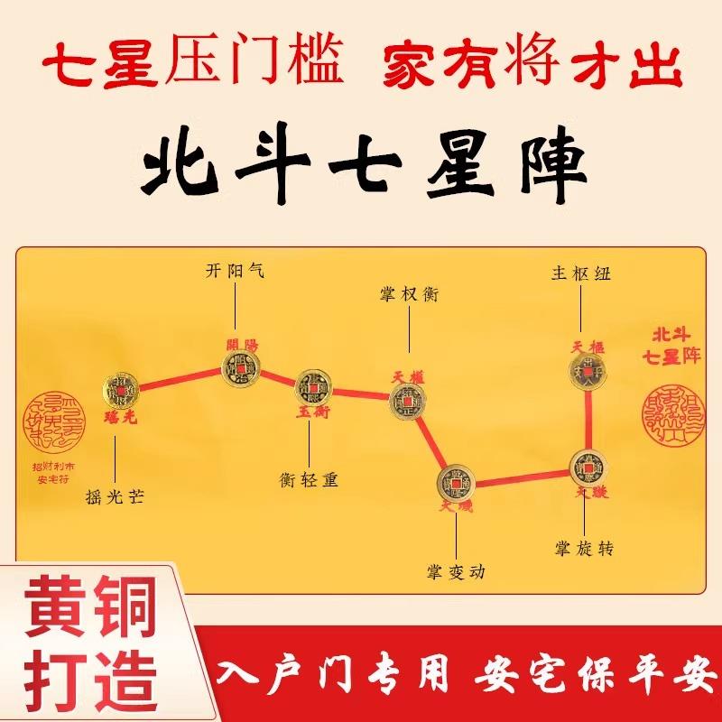 朱砂北斗七星阵入户门门槛石铜钱五帝钱压门槛招财阵图过门石下压