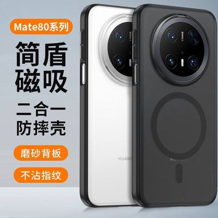 适用华为Mate80ProMax磁吸手机壳简盾平面PC肤感小米17防摔保护套