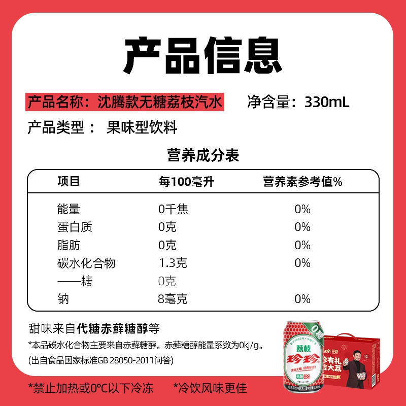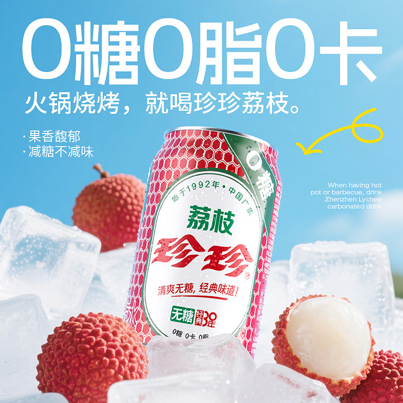 【立减】珍珍碳酸荔枝味0糖0脂0卡沈腾联名礼盒款330ml*24罐