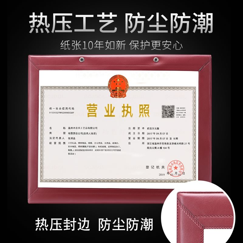 食品卫生许可证正本框架挂墙登记装营业执照的套保护正副本裱框挂