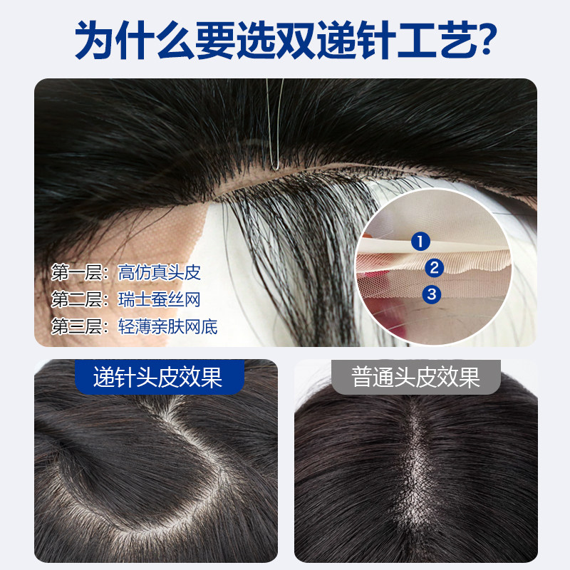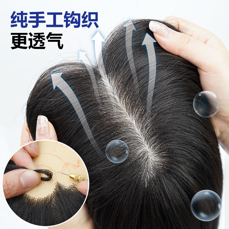 双递针手织头顶轻薄补发片 真发假发女无痕假发片 增发量蓬松发片