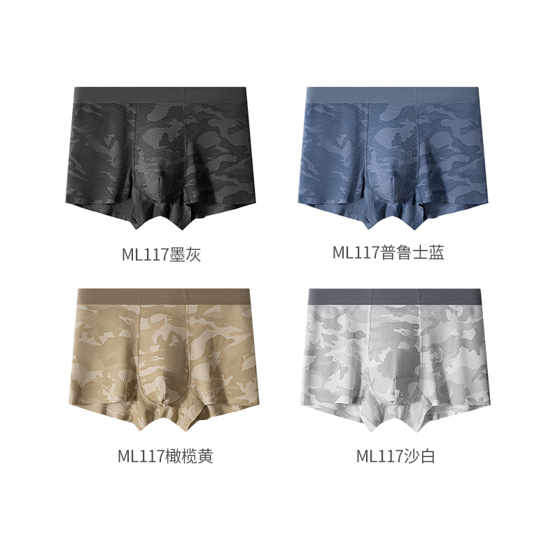 米兰男士内裤冰丝无痕平角裤中腰印花时尚四角裤透气内裤男生2025