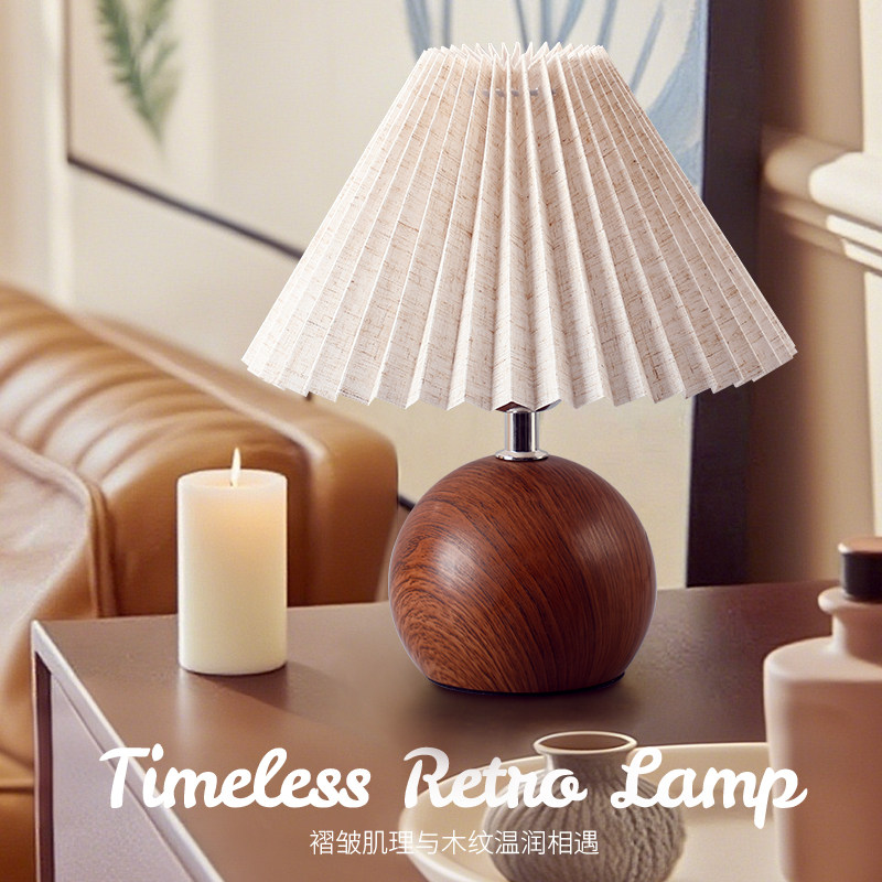 百褶复古卧室床头灯现代简约轻奢高级感客厅书房装饰氛围台灯