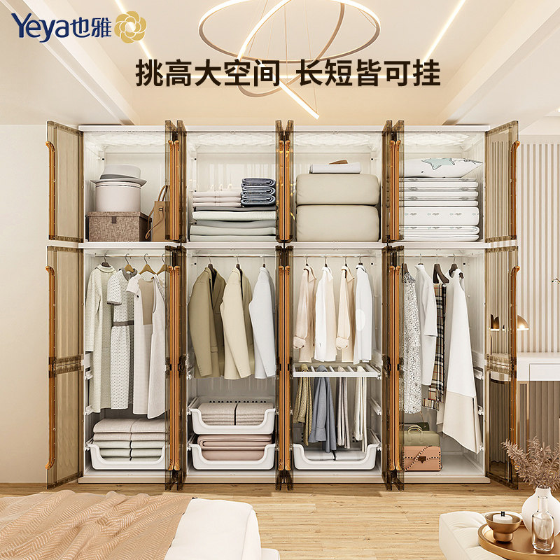 也雅简易衣柜家用卧室衣橱收纳柜出租房用成人搬家塑料加厚组装柜