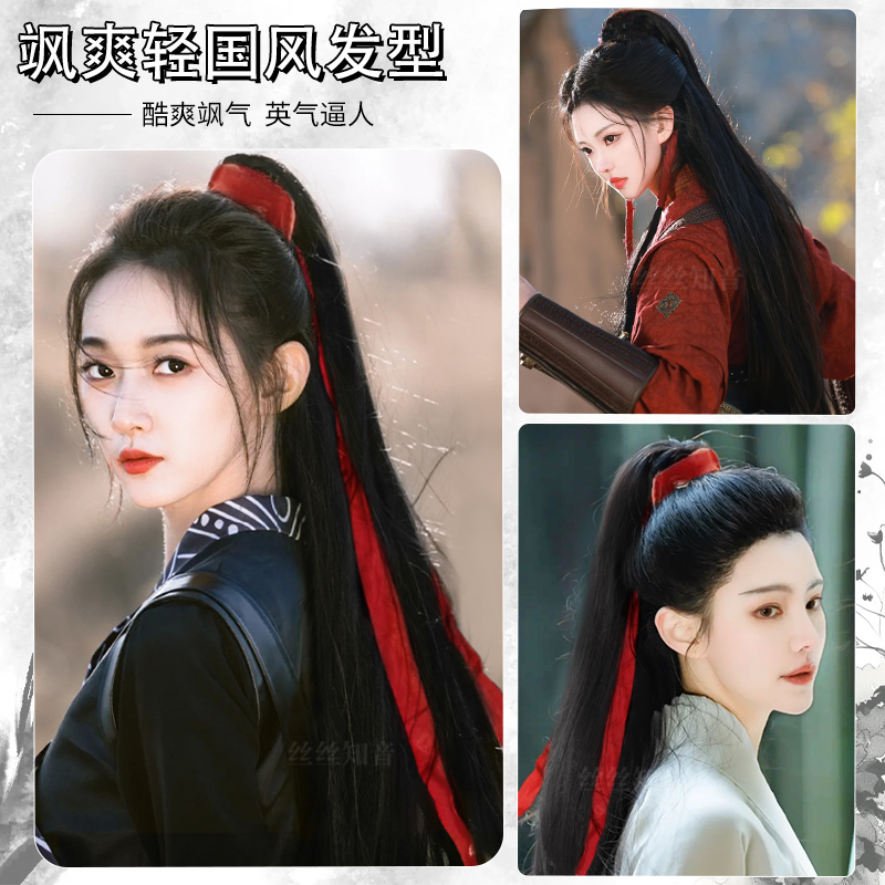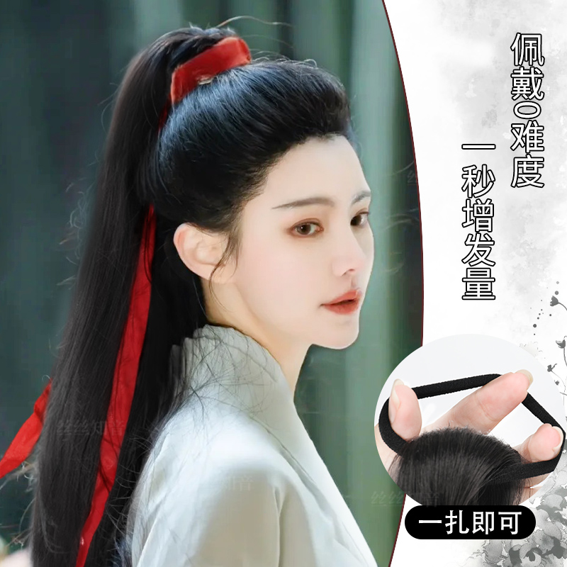 汉服假发辫子国风高马尾古风长直发古装男女通用马尾侠客发髻造型