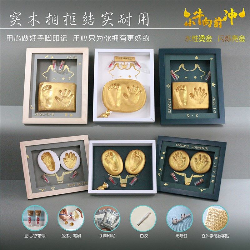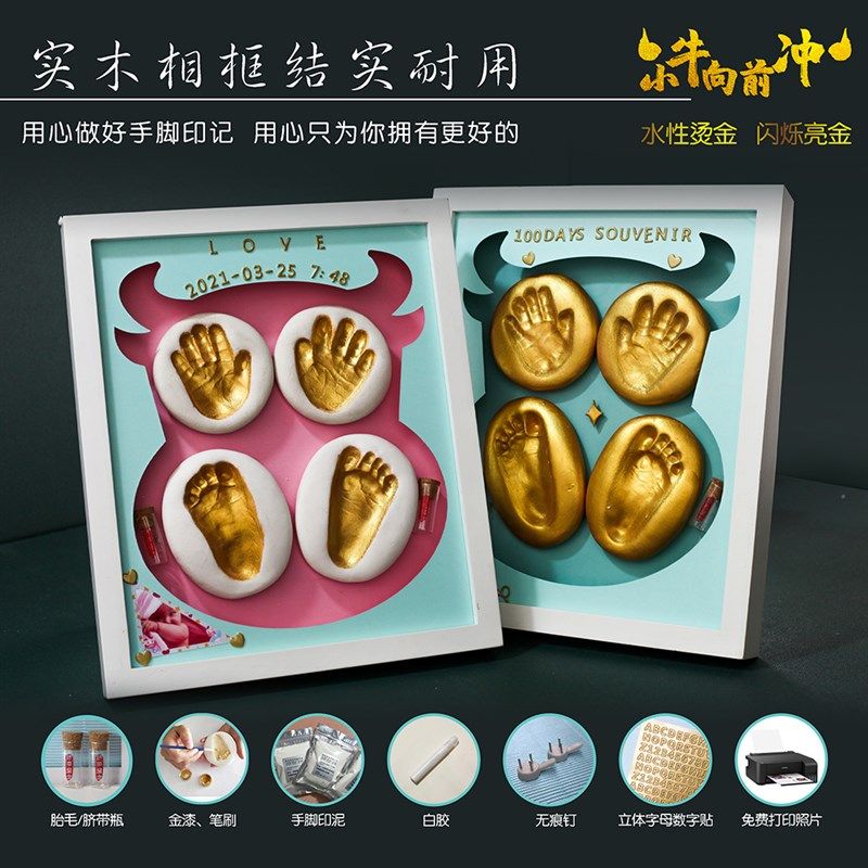 极速牛年宝宝手足印泥胎毛脐带纪念品相J框新生婴儿童手印脚印满