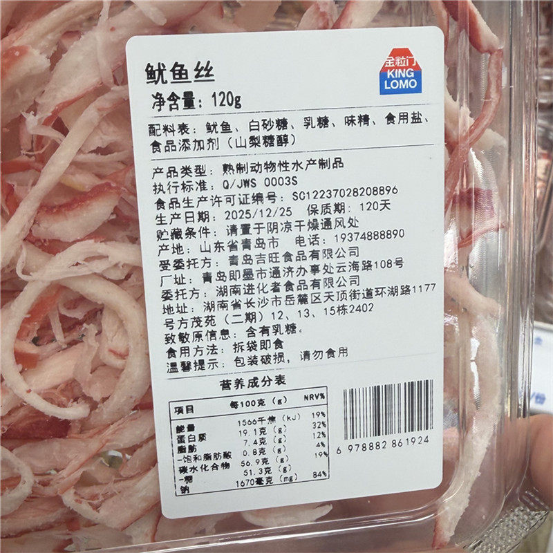 湖南长沙国金街印象汇金粒门鱿鱼丝120克保质期120天