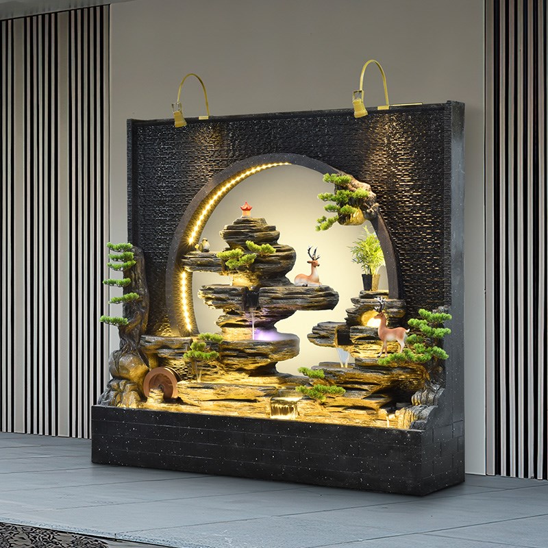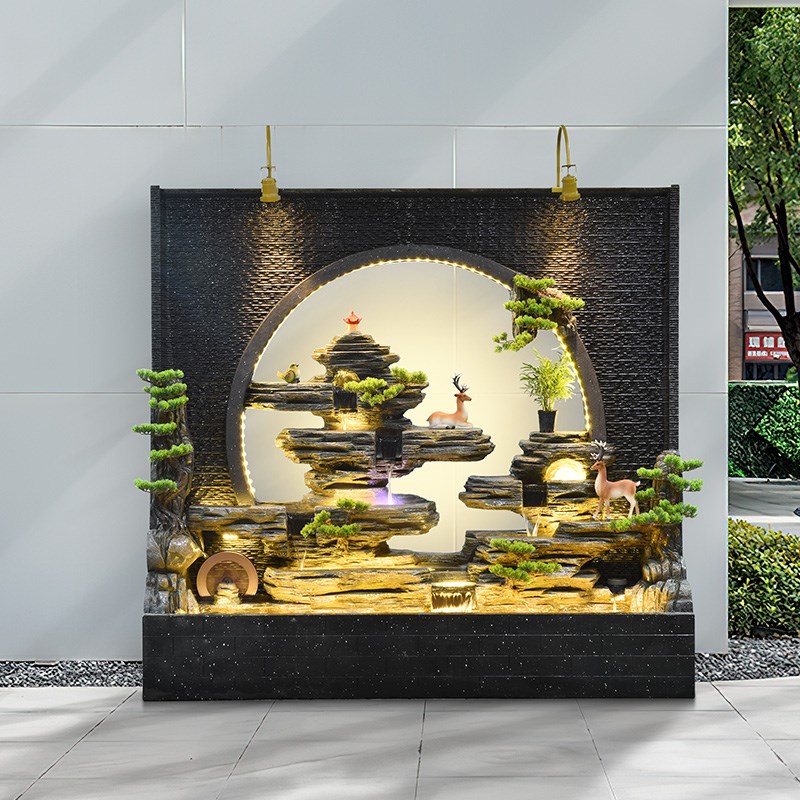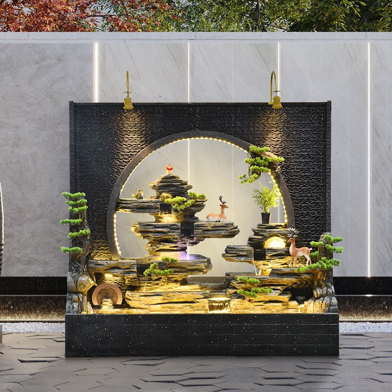 锦绣山河水幕墙流水玄关办公室酒店庭院户外假山喷泉循环水景摆件