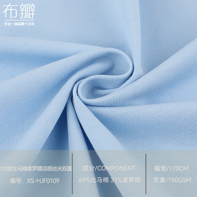 110支比马棉索罗娜液氨丝光凉感双面布料高支抗皱轻奢T恤短袖面料